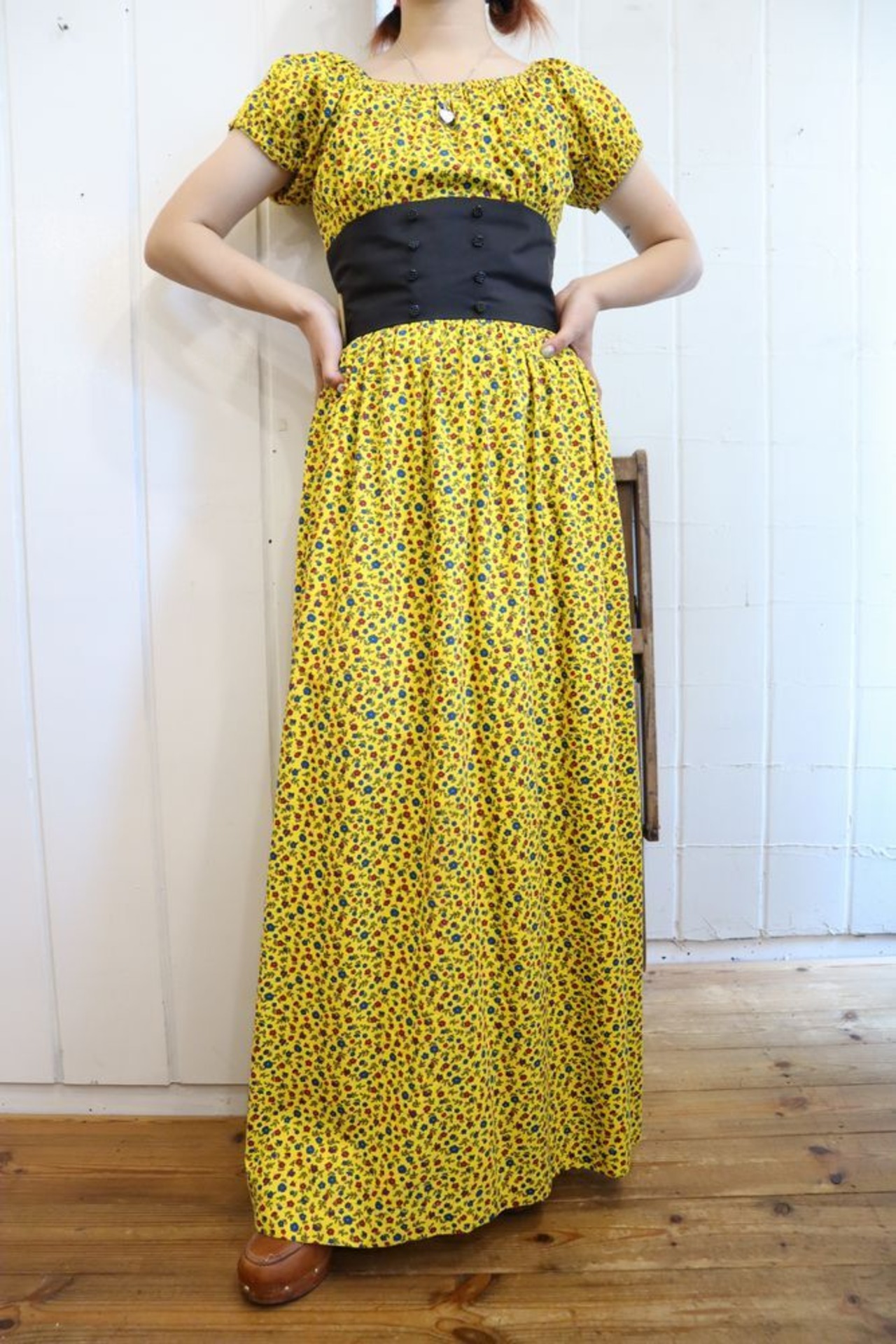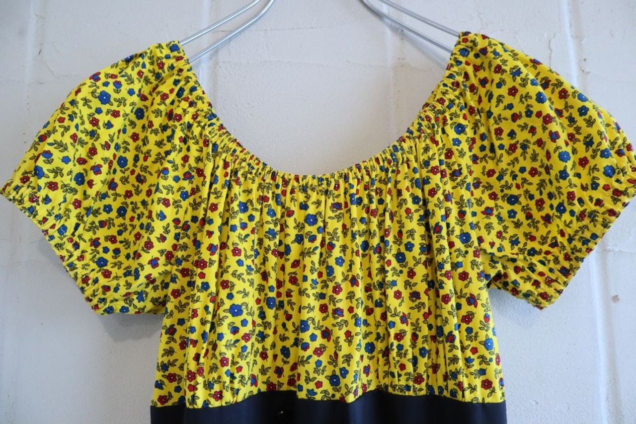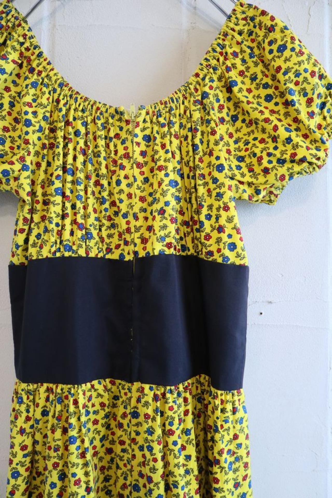 赤と青の小さなお花柄がとても可愛い70sドレスです。