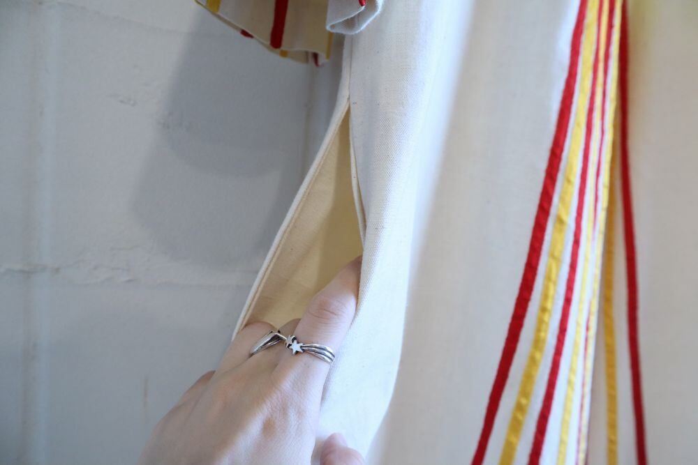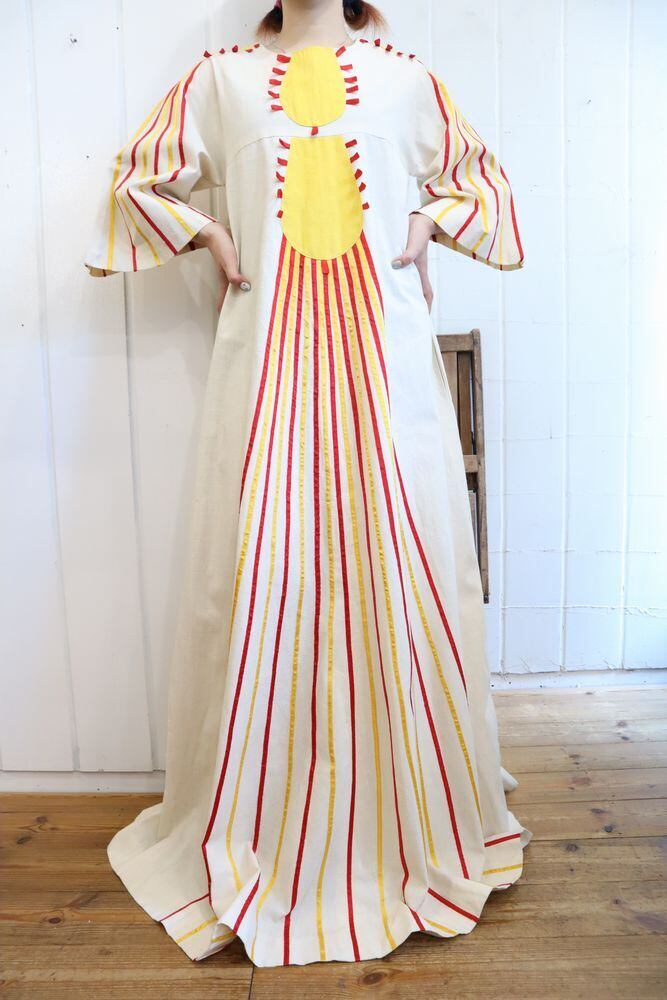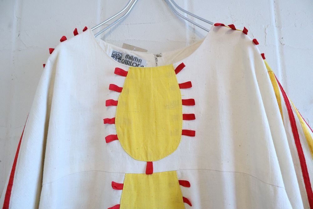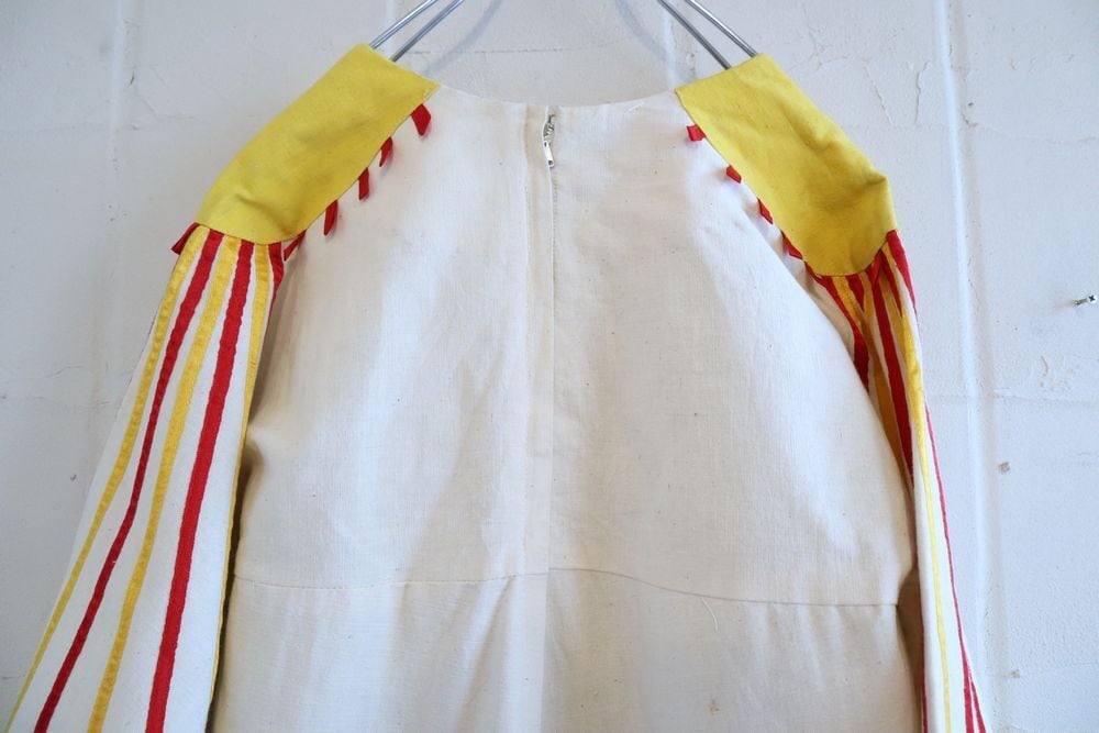 60-70s offwhite×yellow×red patch & tape design Mexican dress [l-795]