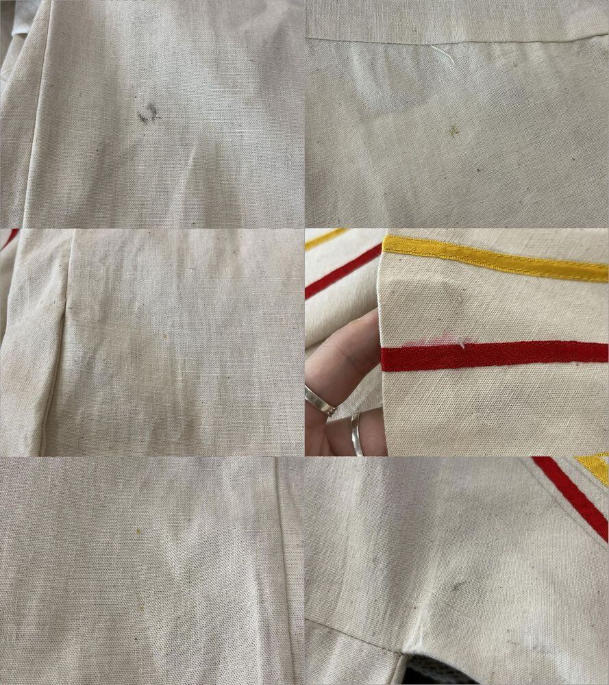 いくつか汚れやシミ、袖に下描きと思われる跡がございますが、古着の味として着て頂けるかと思われます。