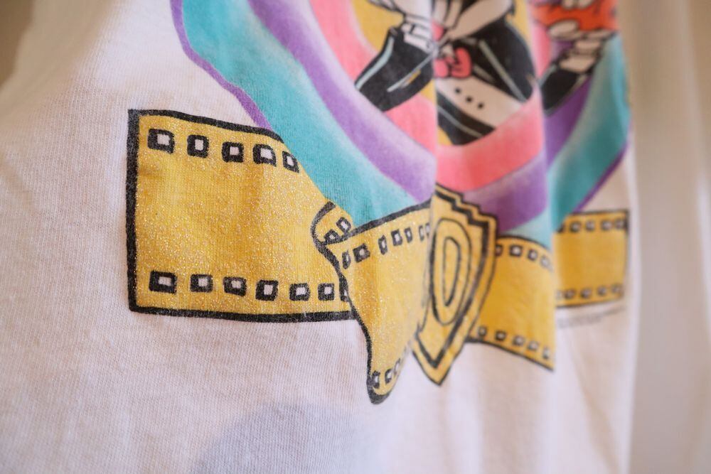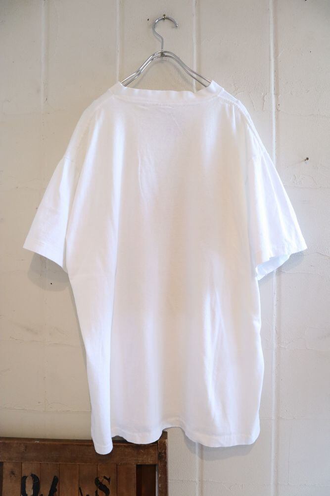 またプリント部分にやや色落ち、ボディや袖に他の繊維が混じっている箇所や一部薄汚れ、首後ろ辺りに小穴がございますが、あまり気にならないかと思われます。