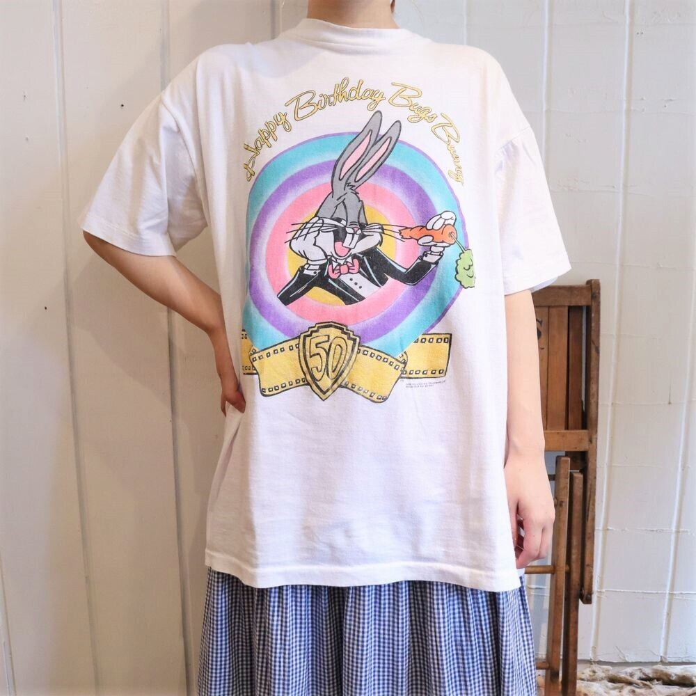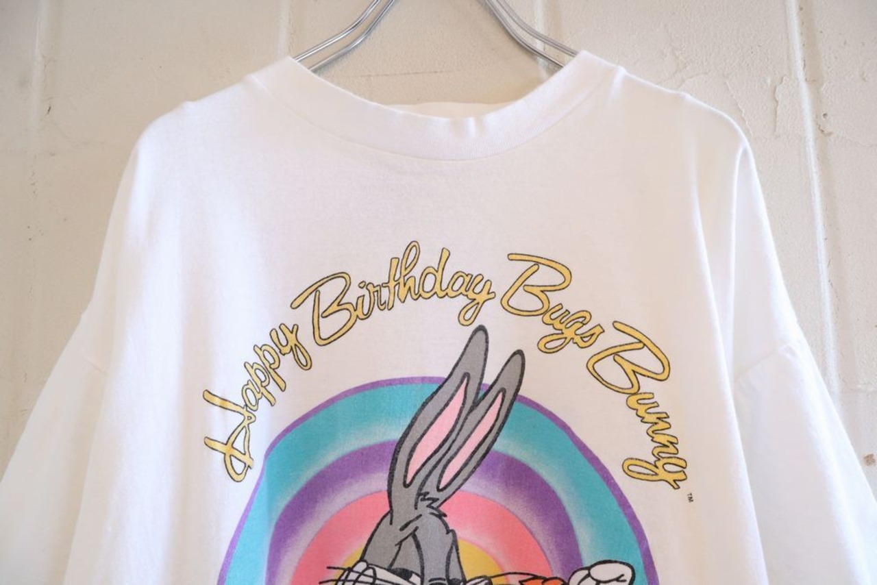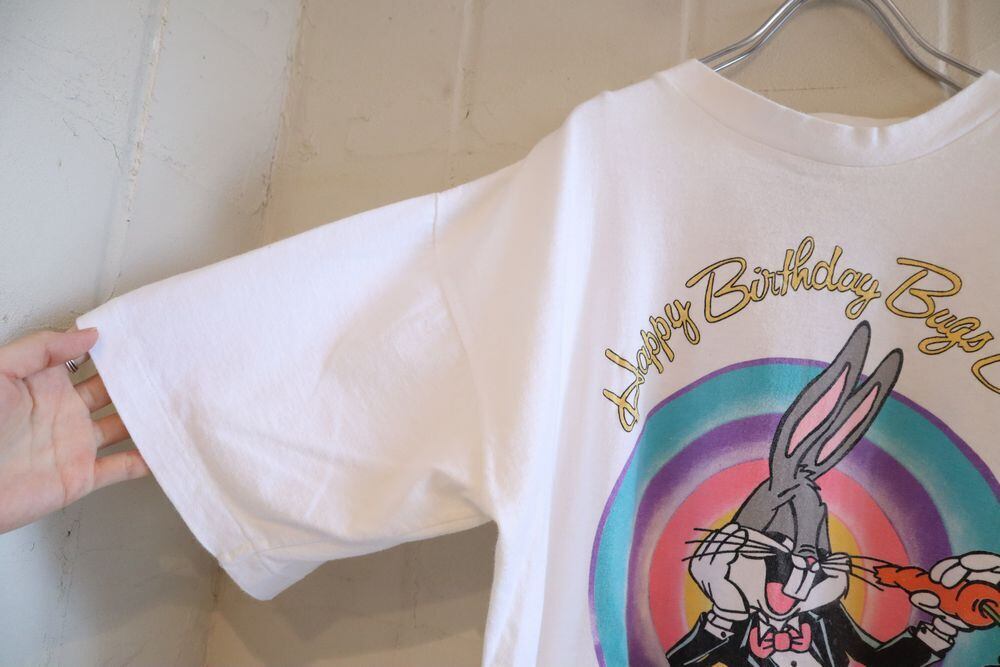 バッグスバニーとラメでキラキラとしたロゴが可愛いTシャツです。