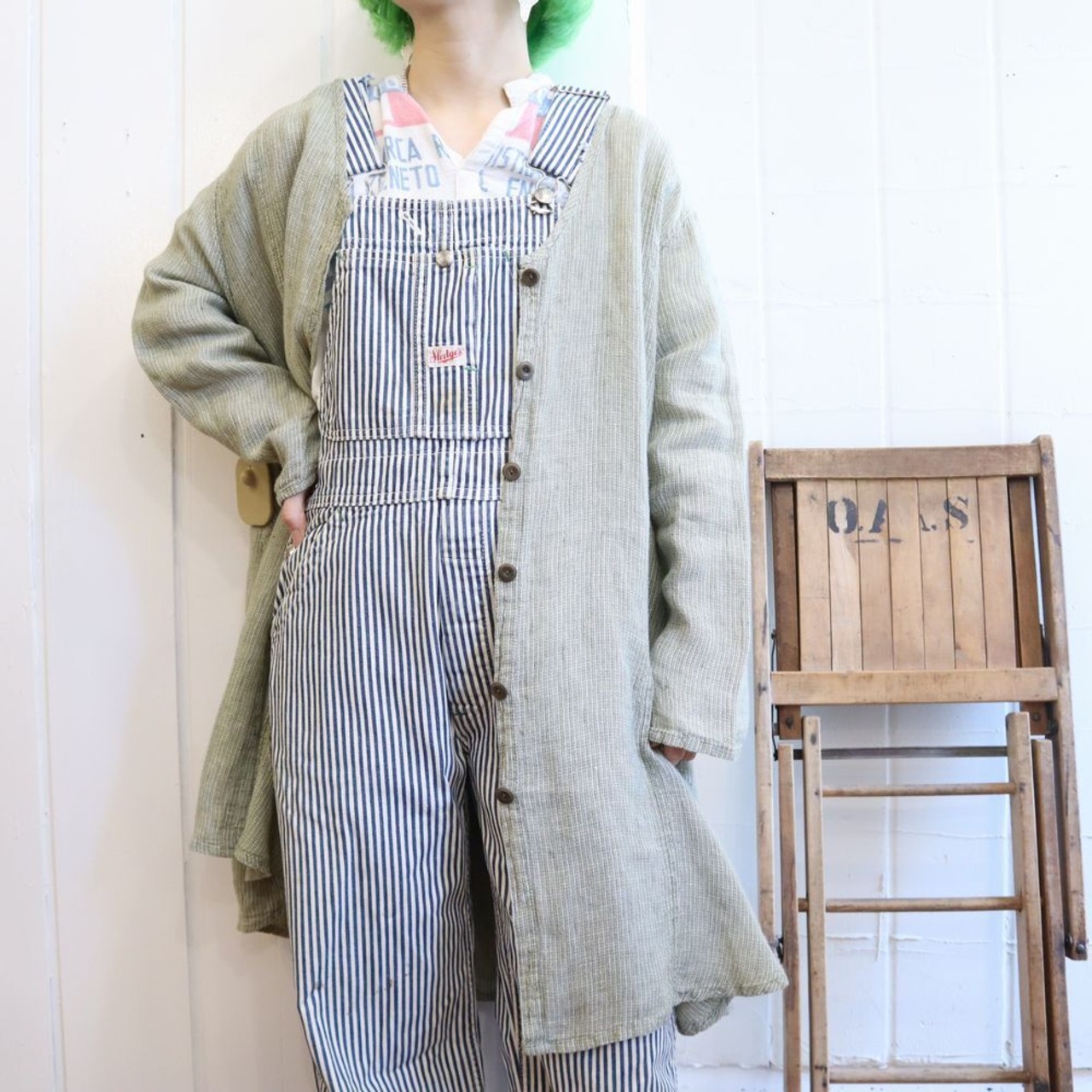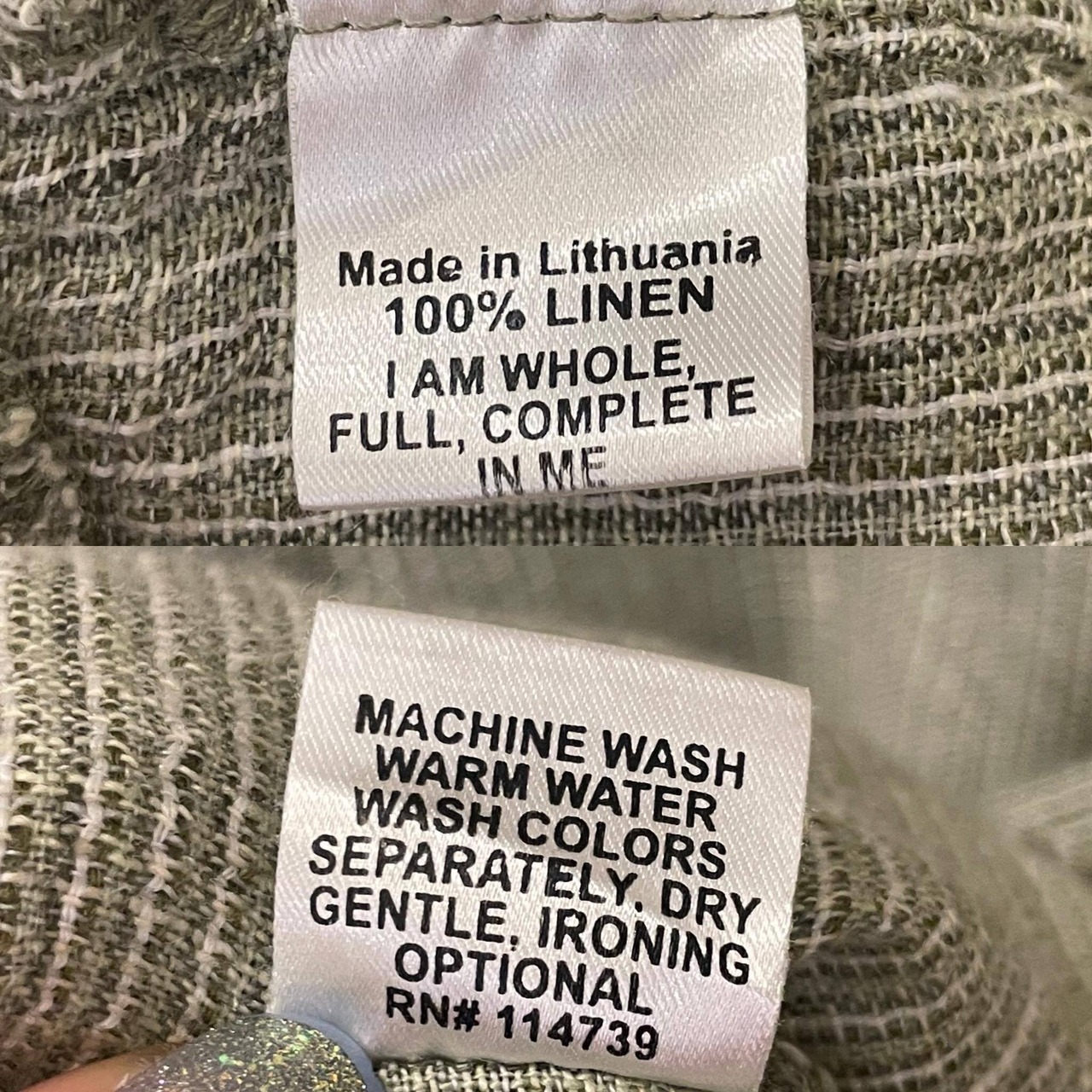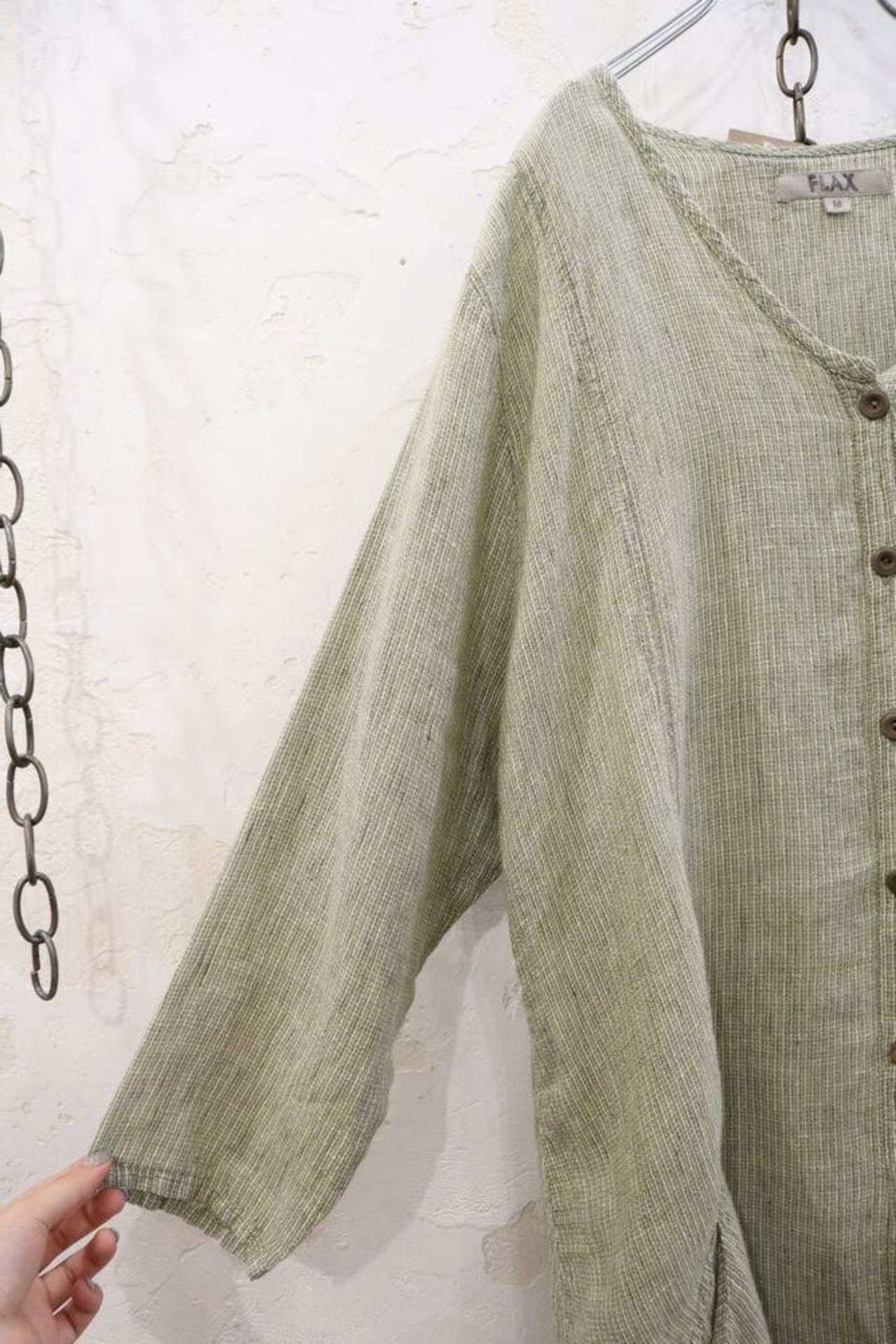 "FLAX" green plaid long sleeve linen shirt [k-807]