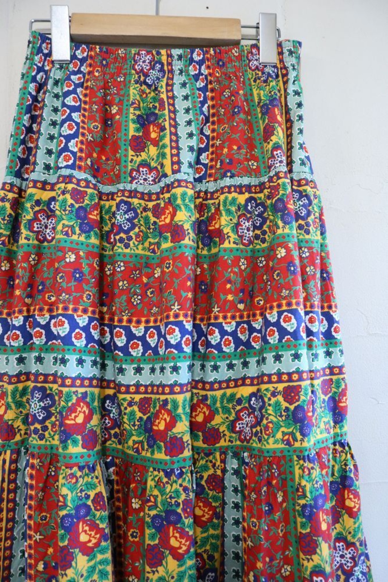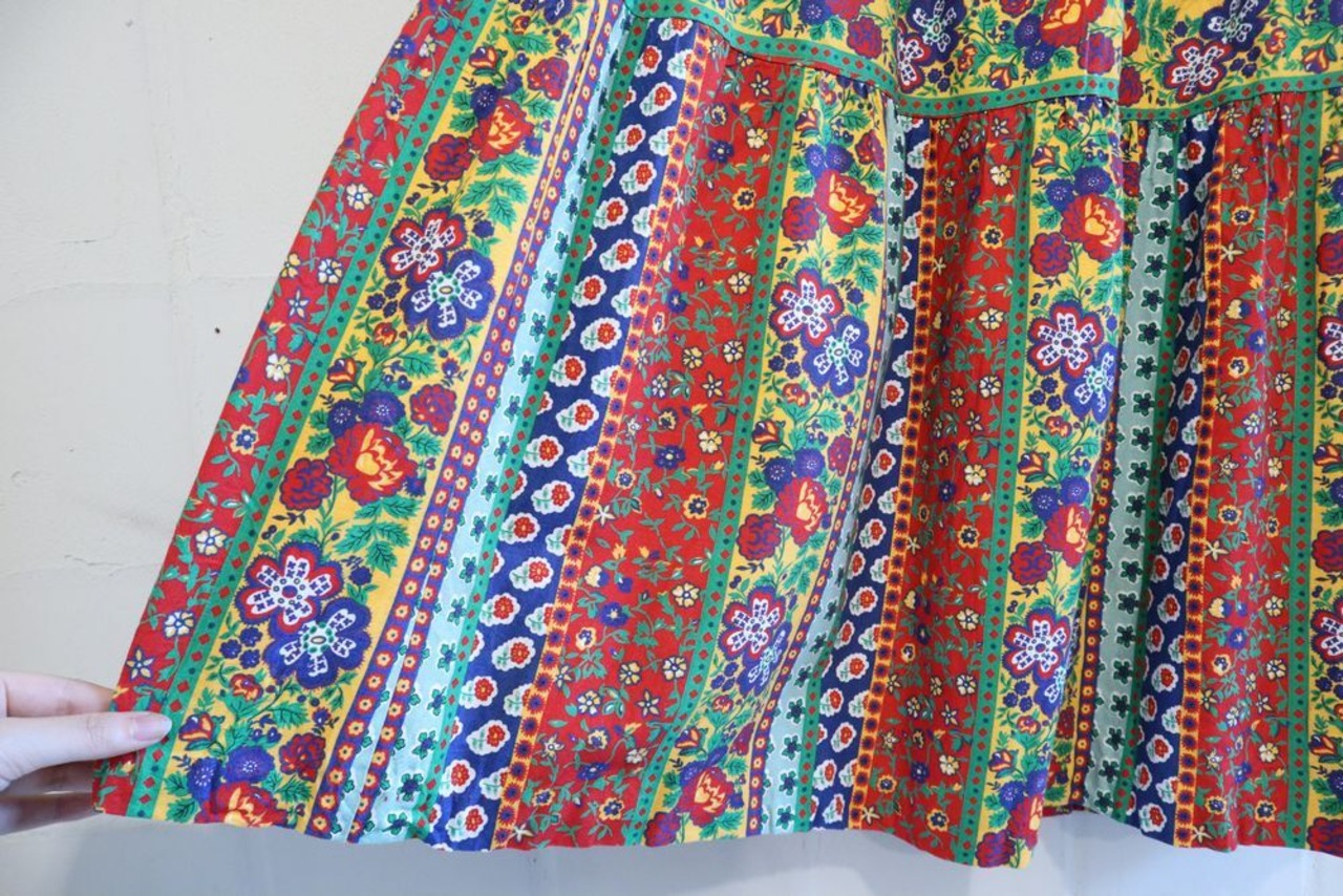red×green×colorful flower pattern tiered skirt [l-839]