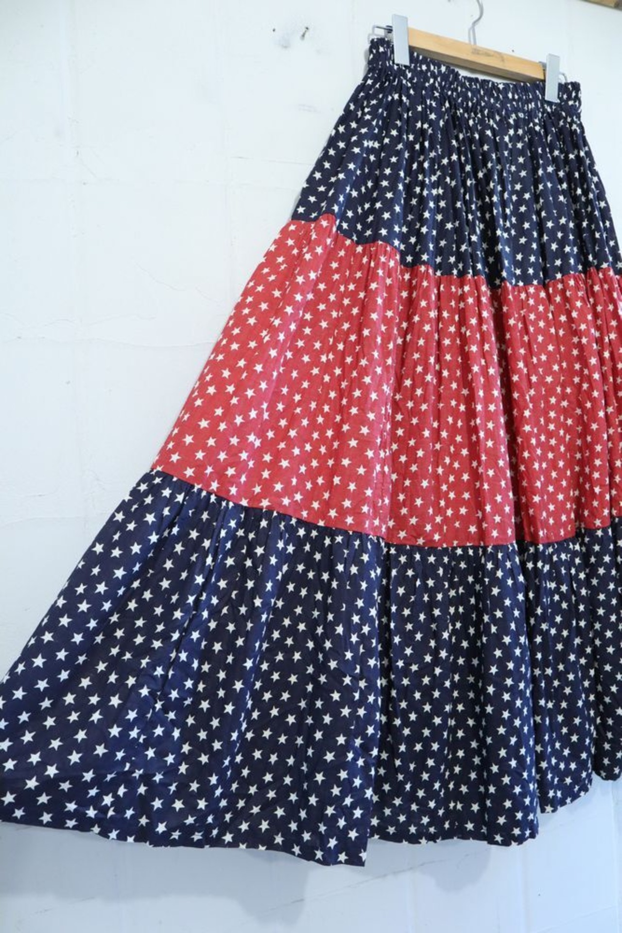 red×navy×white star pattern tiered skirt [l-841]