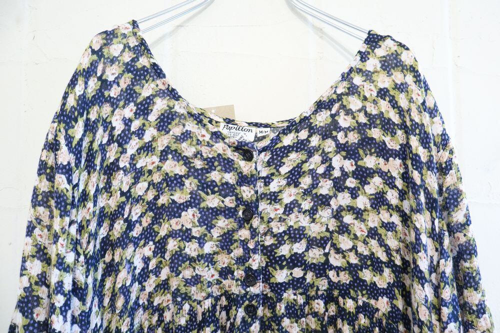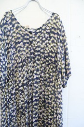 navy×pinkbeige×lightgreen dot&flower pattern India rayon dress [l-850]