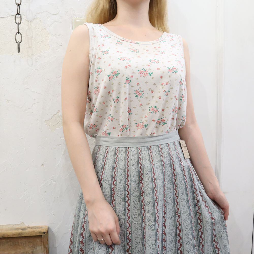 white×pinkred×green flower pattern tanktop [l-859]