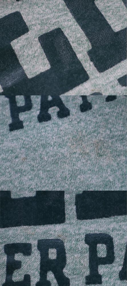 プリントやボディにいくつかシミ汚れがございますが、古着の味として着て頂けるかと思われます。