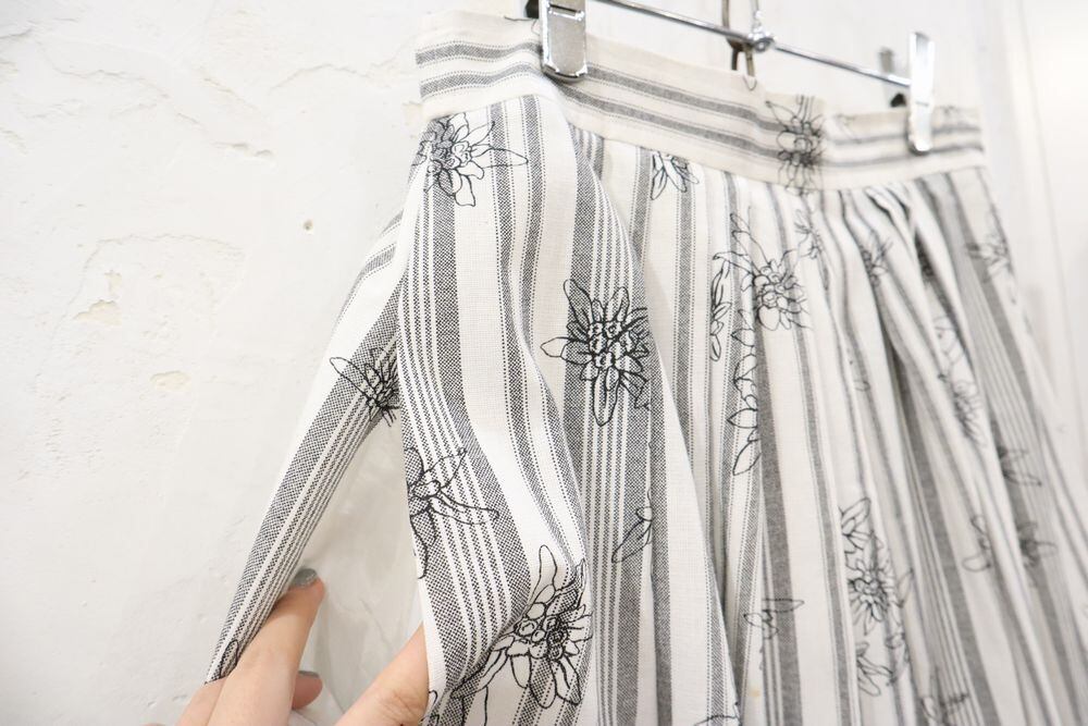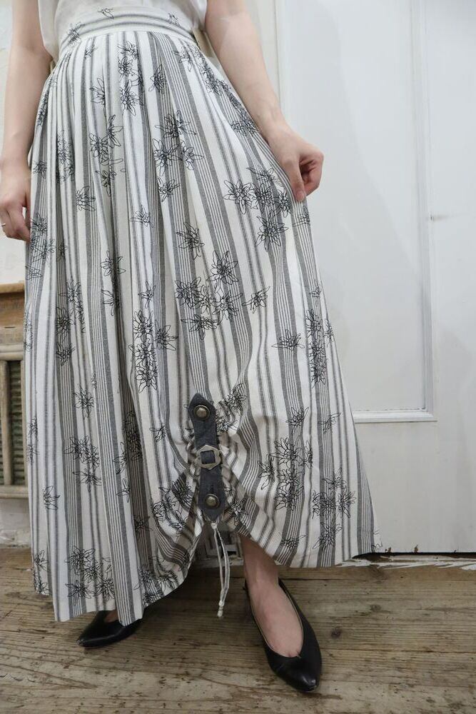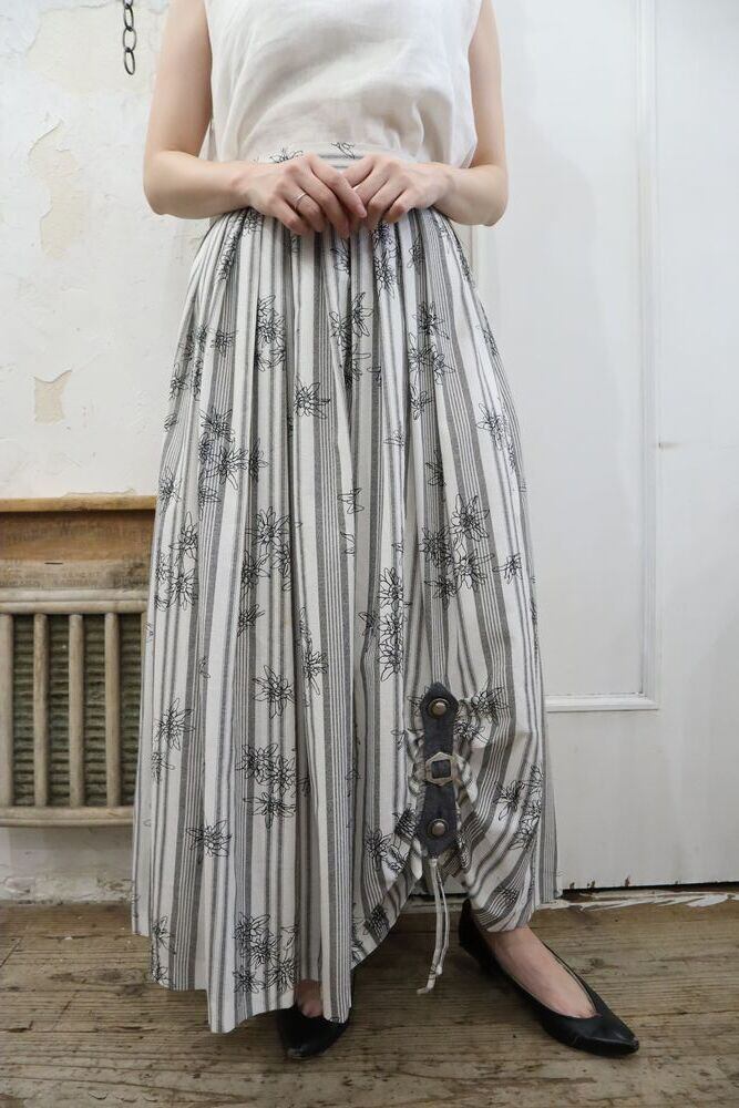 white×gray×black flower&stripe tyrol skirt [l-871]