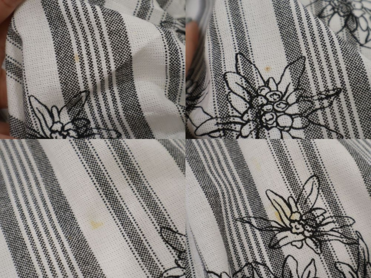 いくつか小さなシミ汚れが見受けられますが、古着の味として着て頂けるかと思われます。