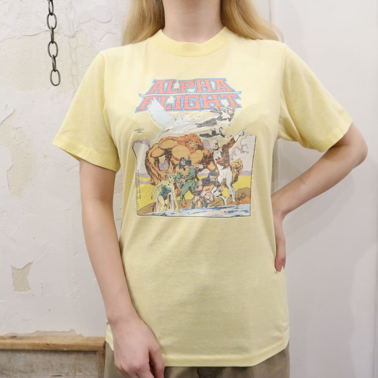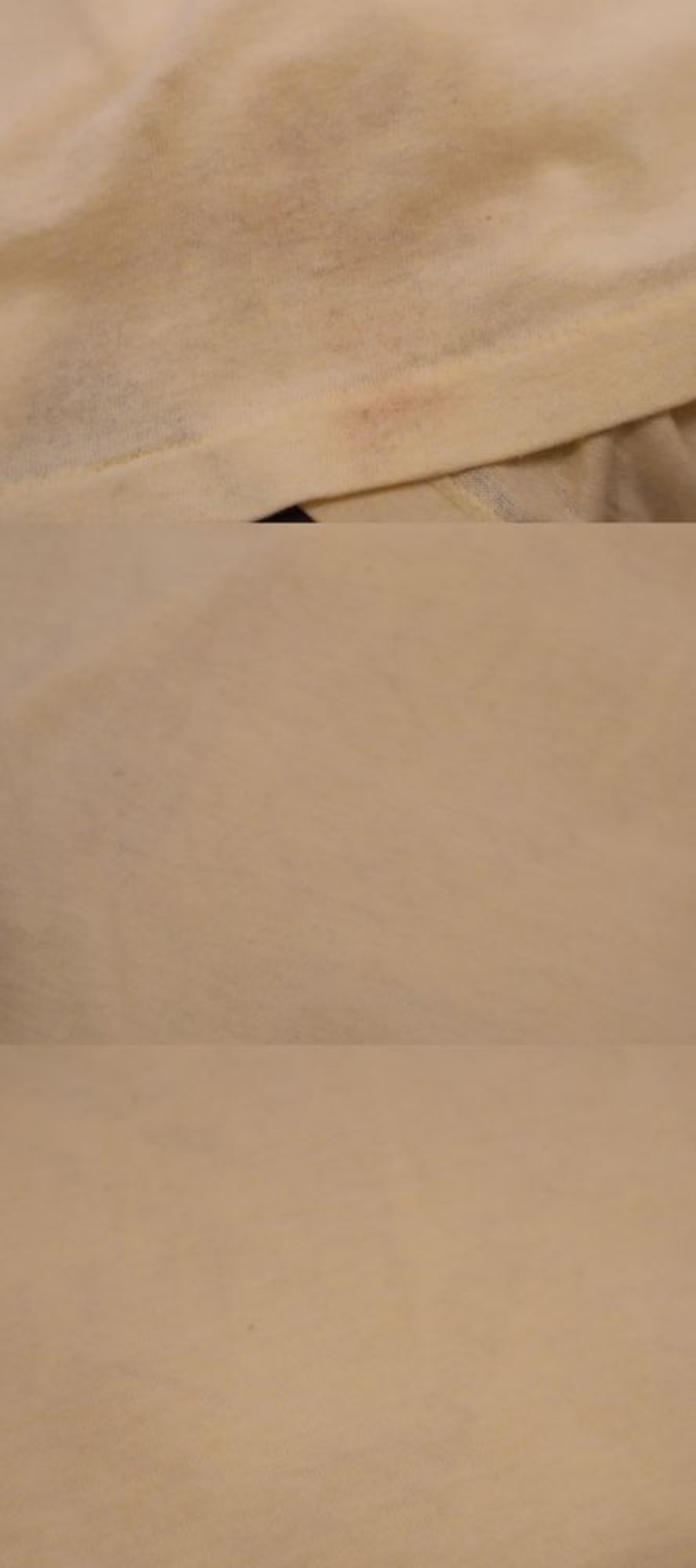 いくつかシミ汚れや薄汚れ、プリント部分全体にひび割れがございますが、古着の味として着て頂けるかと思われます。