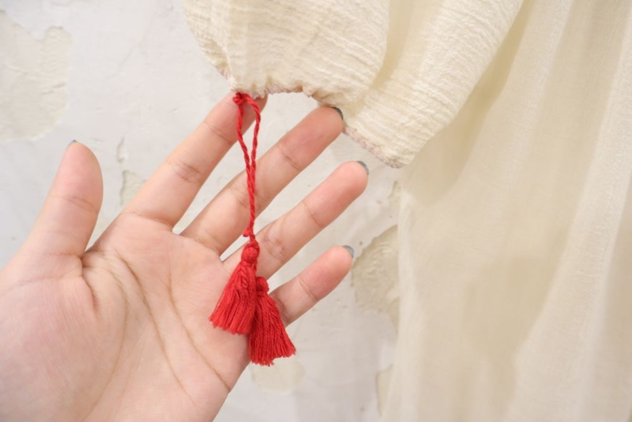 お袖のリボンを絞って頂くとふんわりとしたシルエットになりおススメです!