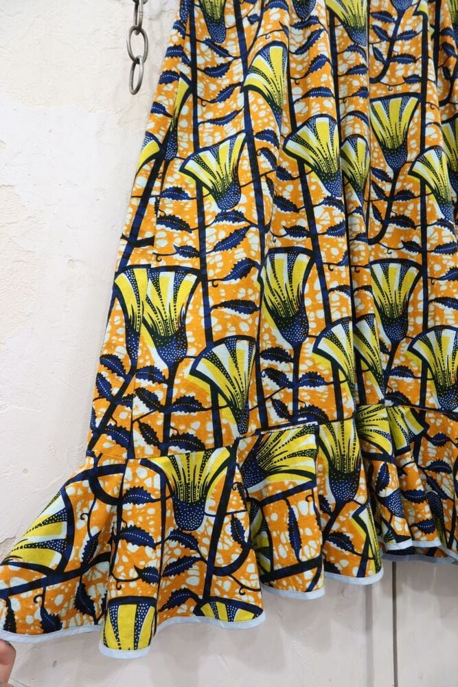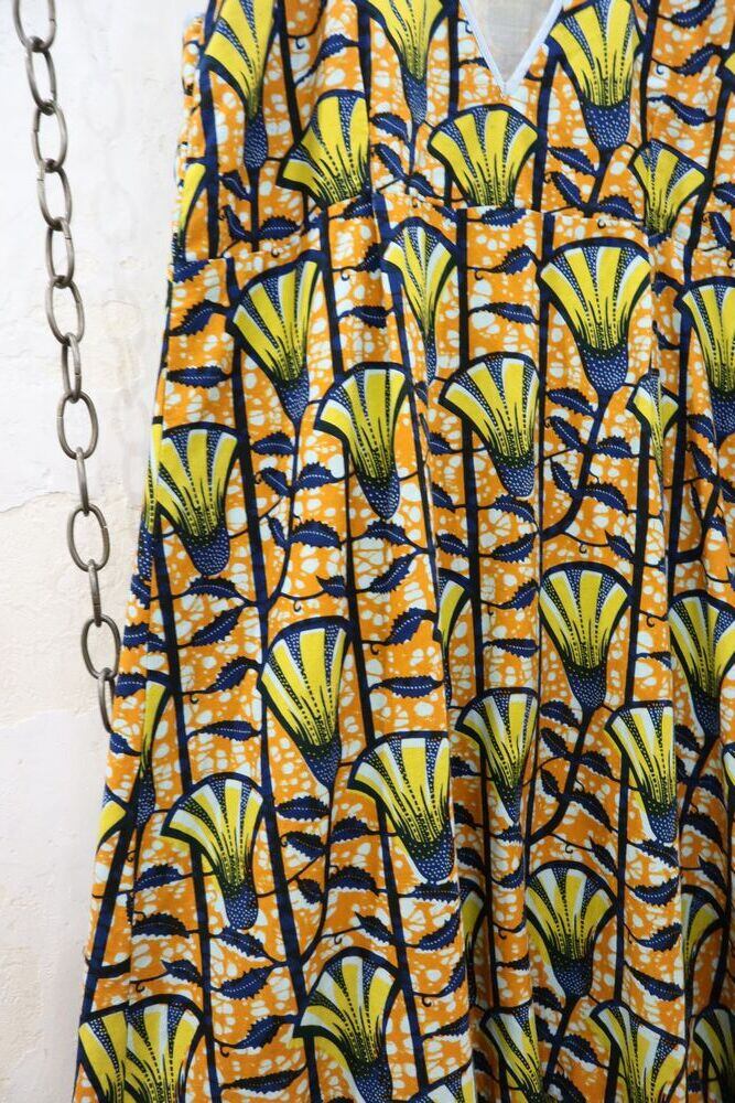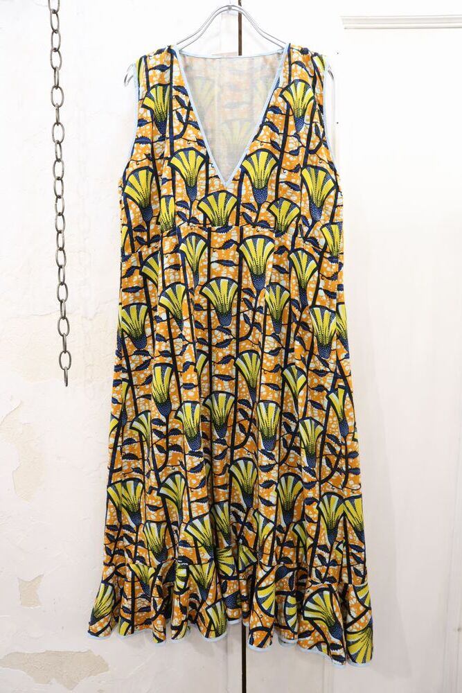orange×yellow×navy flowerprint african batik sleeveless dress [k-895]