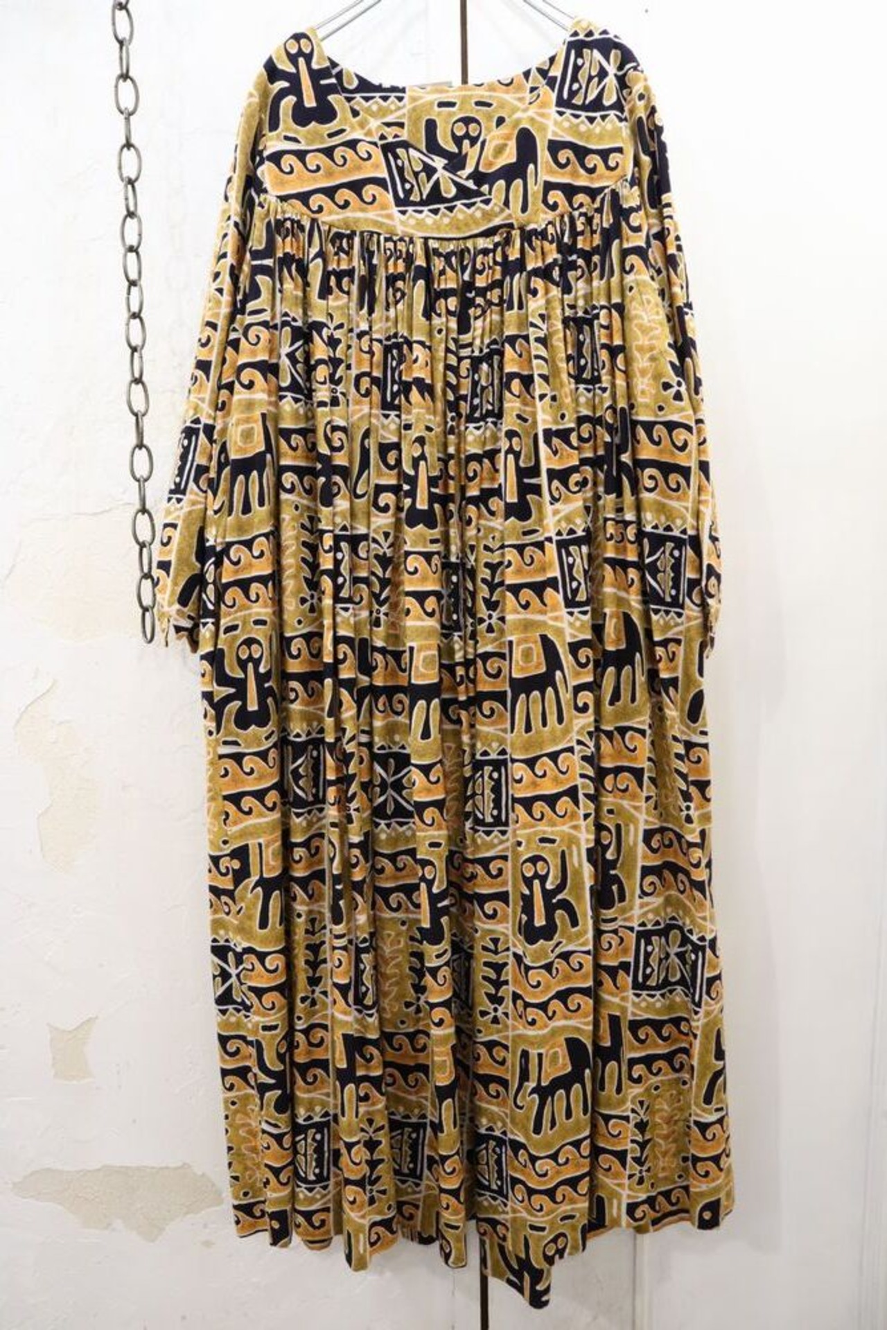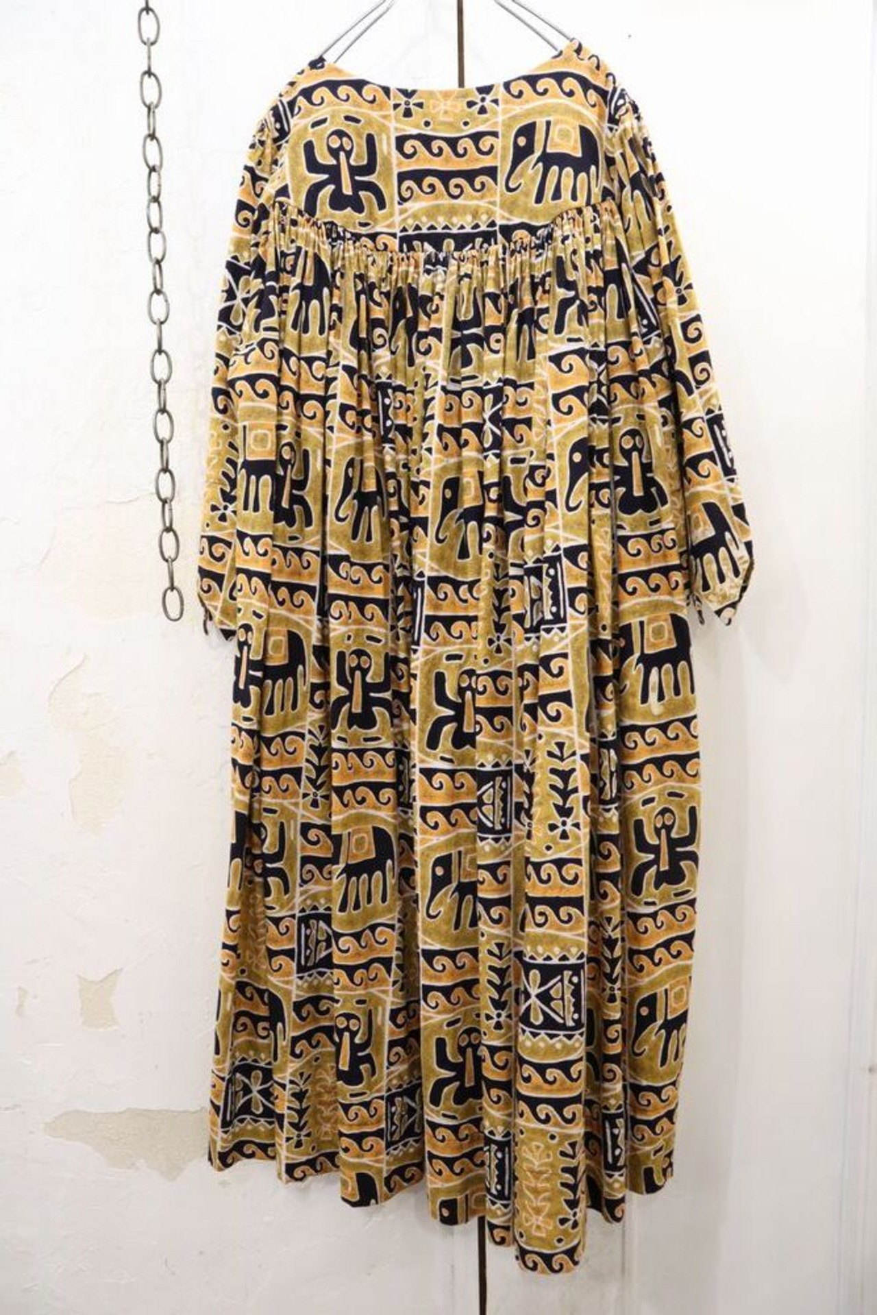 beigeyellow×black animalprint african batik widesleeve dress [k-896]