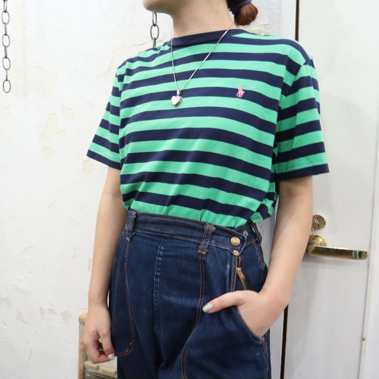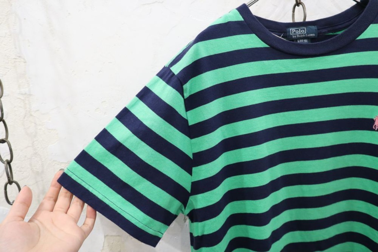 ”Ralph Lauren" navy×green×pink stripe T-shirt [k-899]