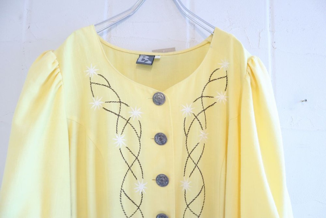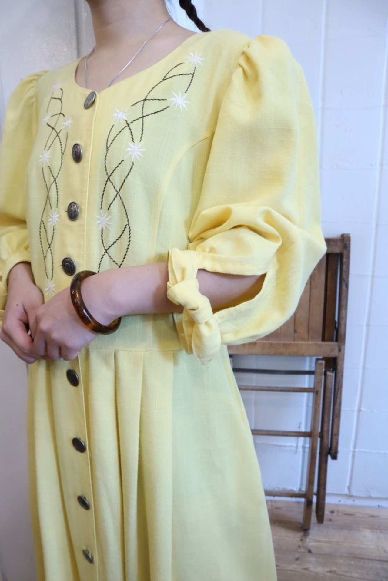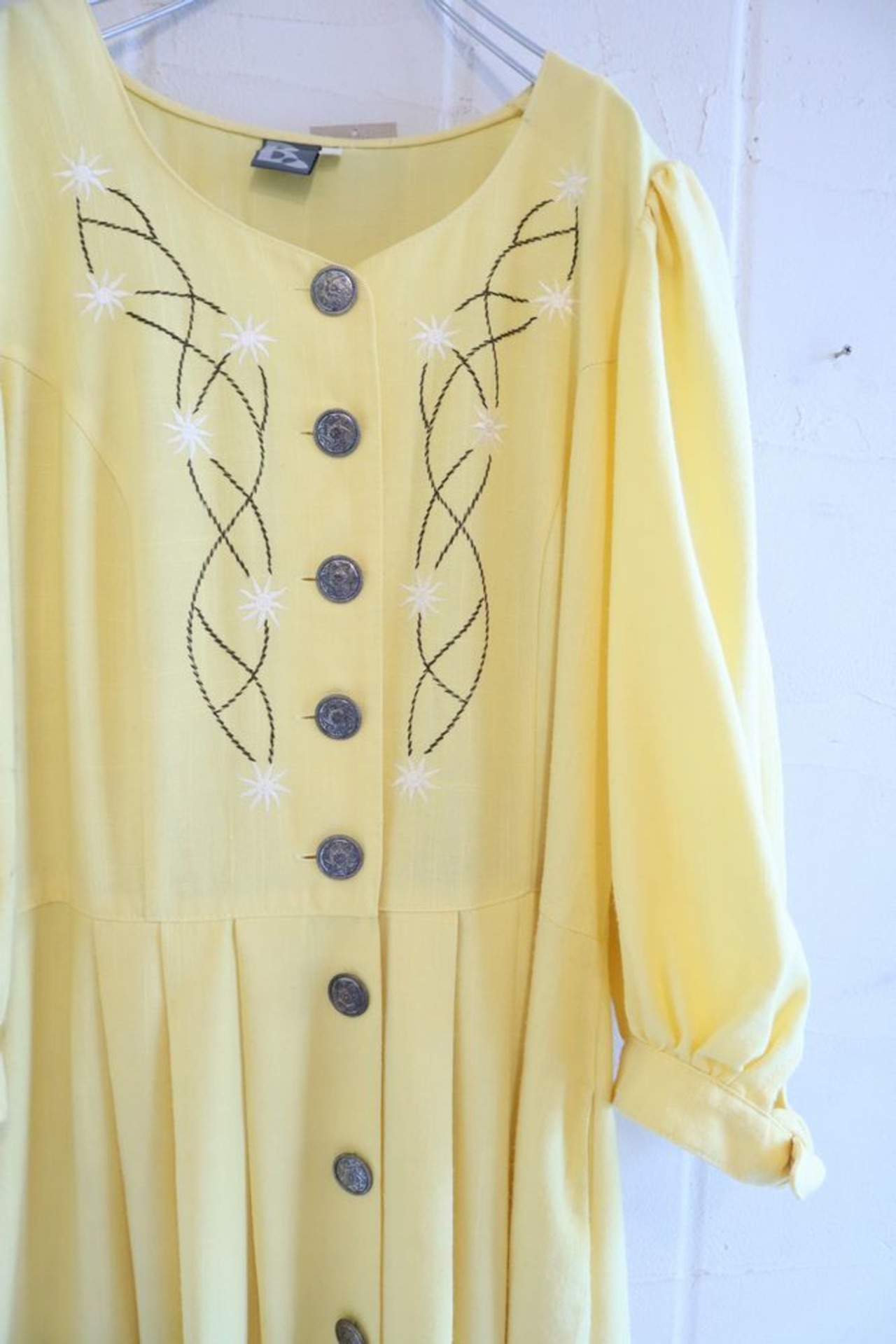 yellow×black×white flower embroidery front button tyrol dress [l-901]
