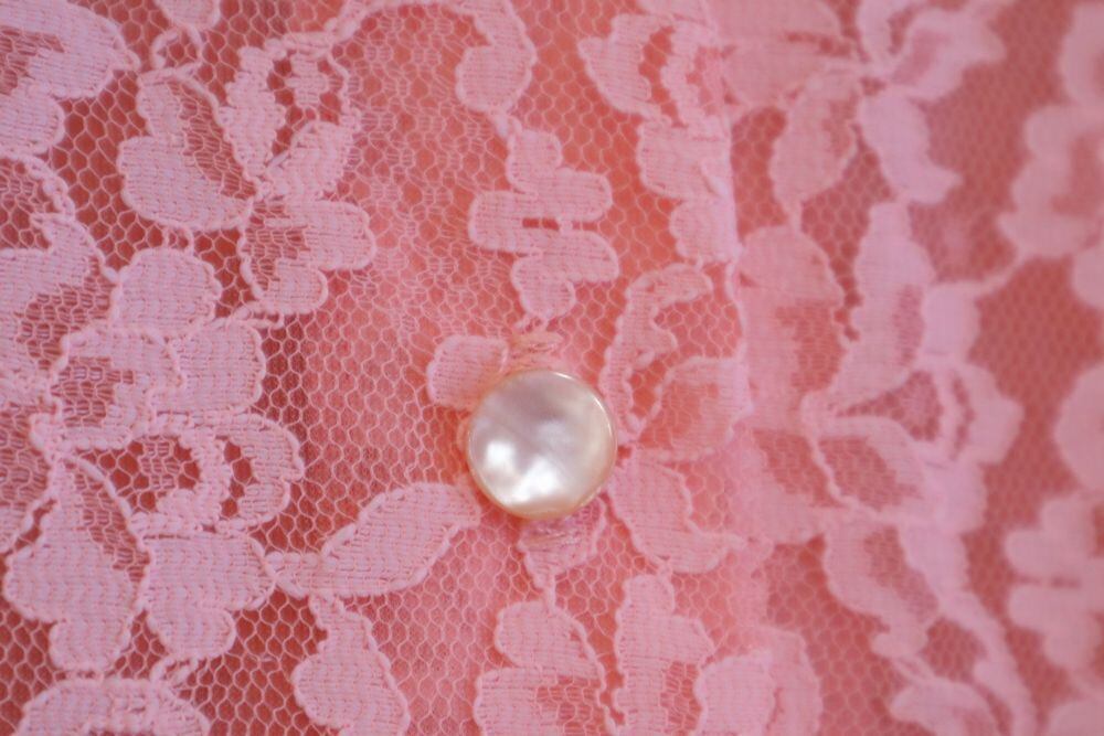 襟や袖、裾のデザインが可愛いランジェリーガウンです。