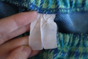 また裾あたりにシミ、股縫い目に若干滑脱がございますが、着用に問題はないかと思われます。