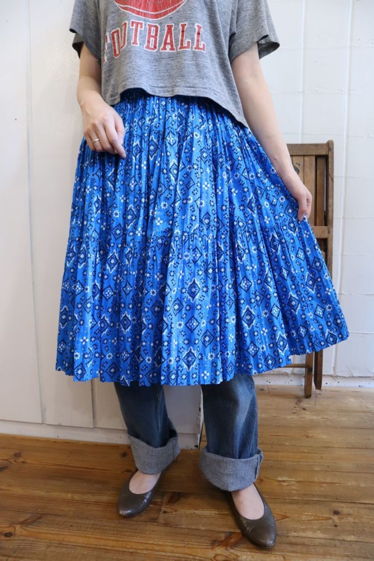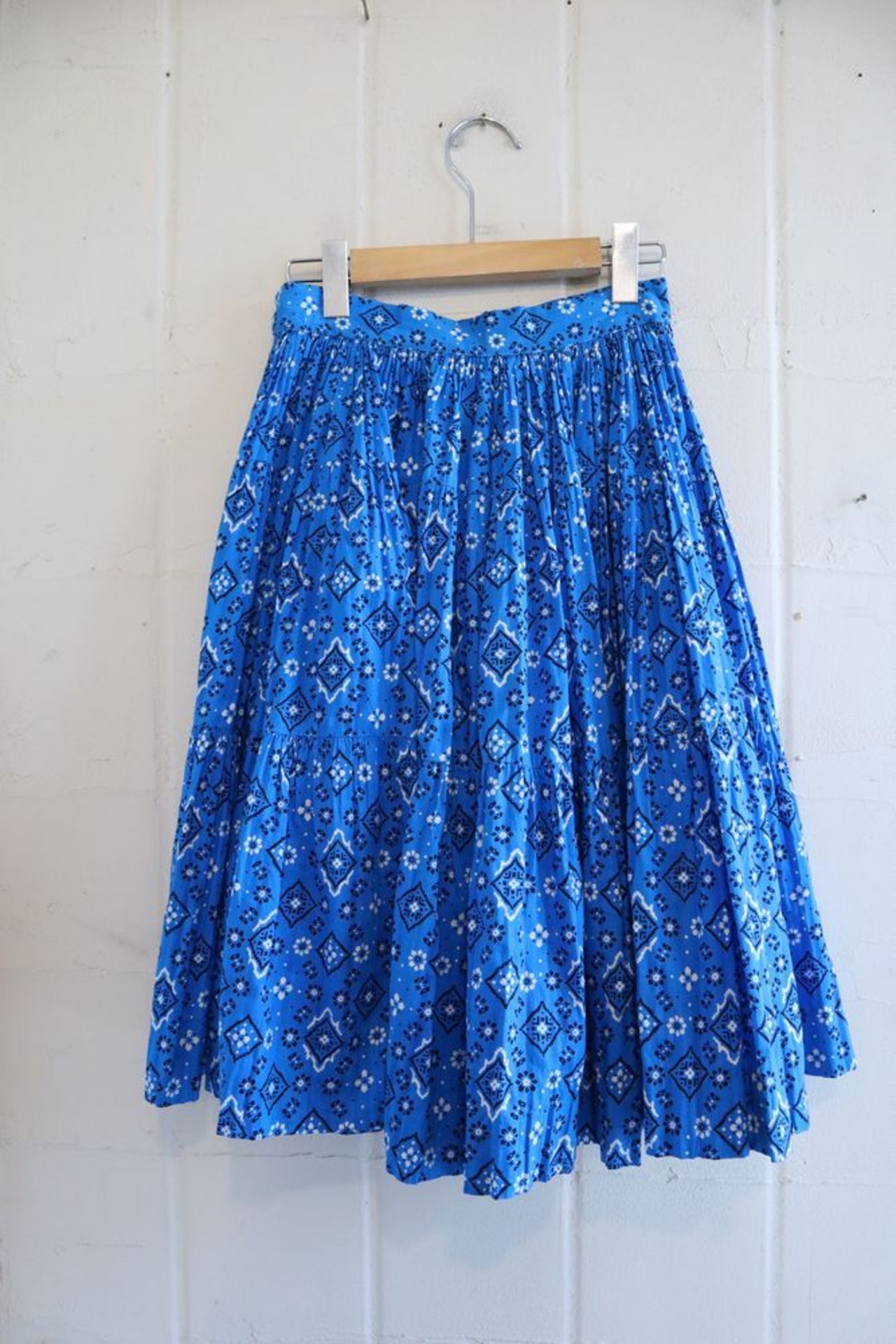 50-60s blue × white bandanna pattern tiered skirt [l-936]