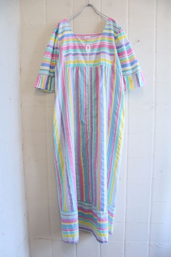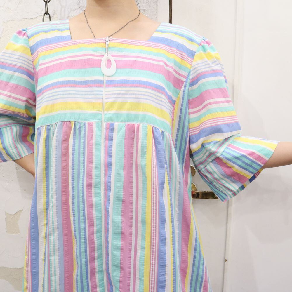カラフルなストライプとしずくのようなチャームが可愛いドレス。