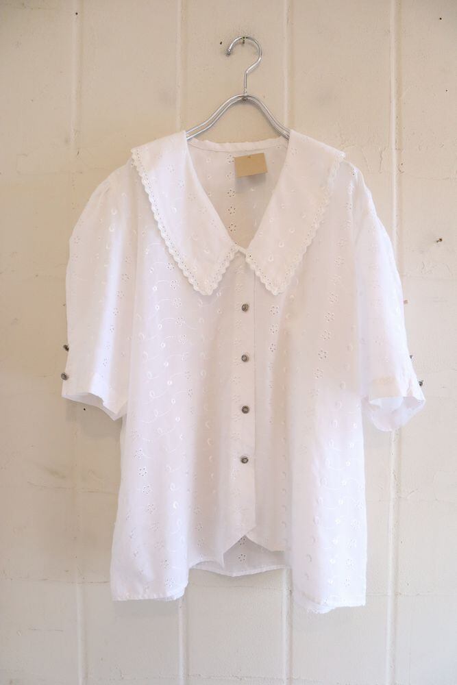 レースのような薄手な素材感、主張しすぎないほどよい襟の形も可愛いポイントです◎