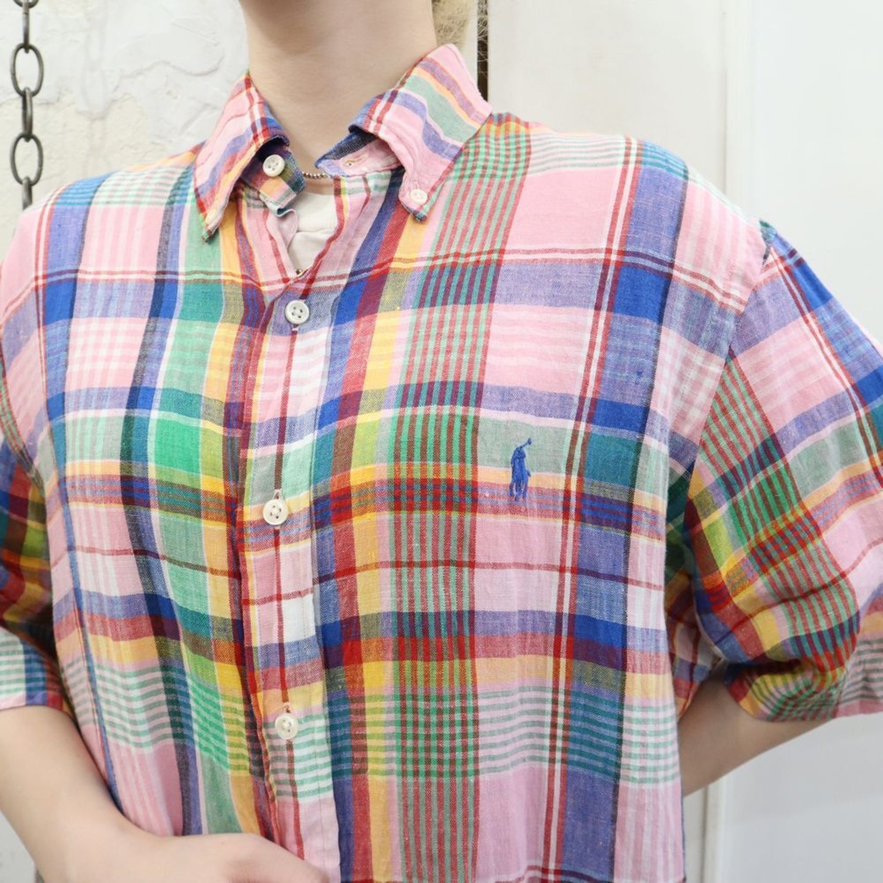 ピンクベースのカラフルなカラーリングが可愛いラルフローレンのシャツ♡