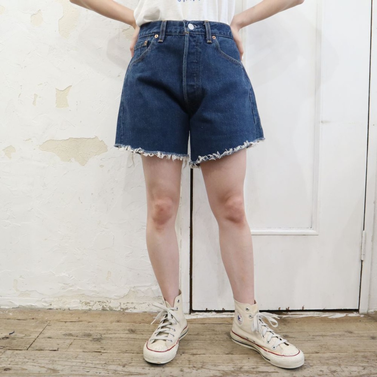 90s "Levi's" indigo blue cut work 501 short pants [k-970]