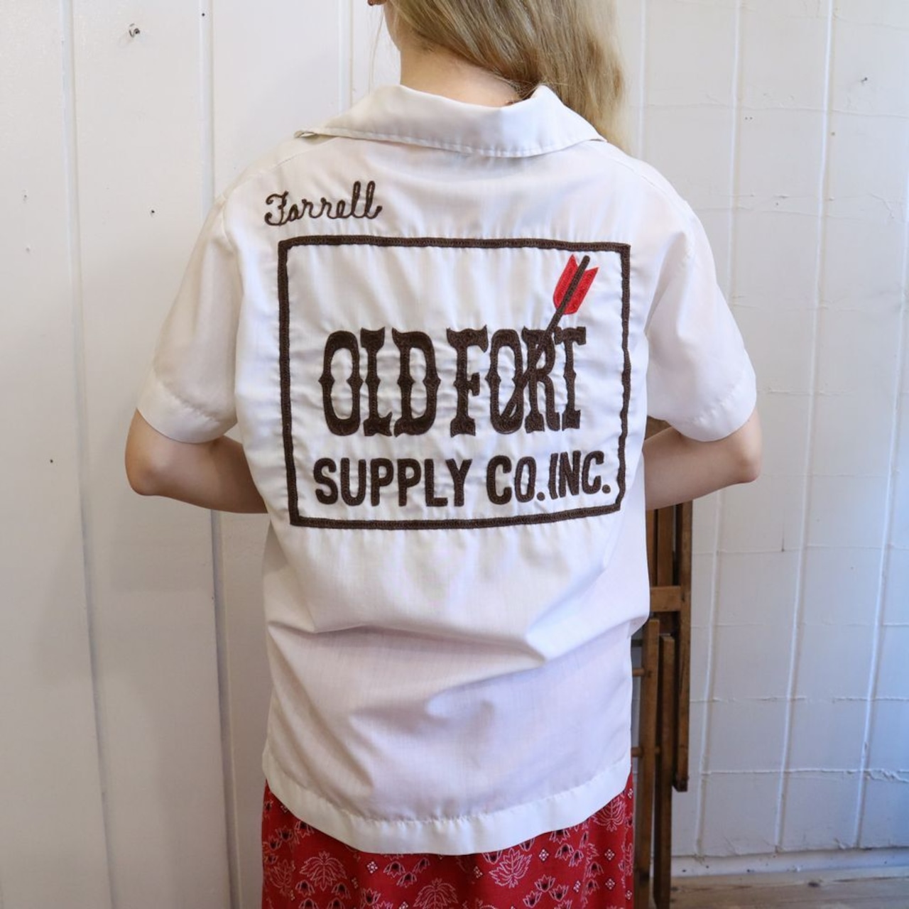 どーんと入ったバックスタイルの刺繍が素敵なボーリングシャツです。