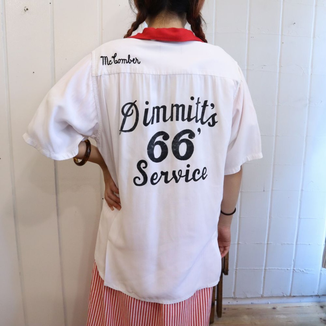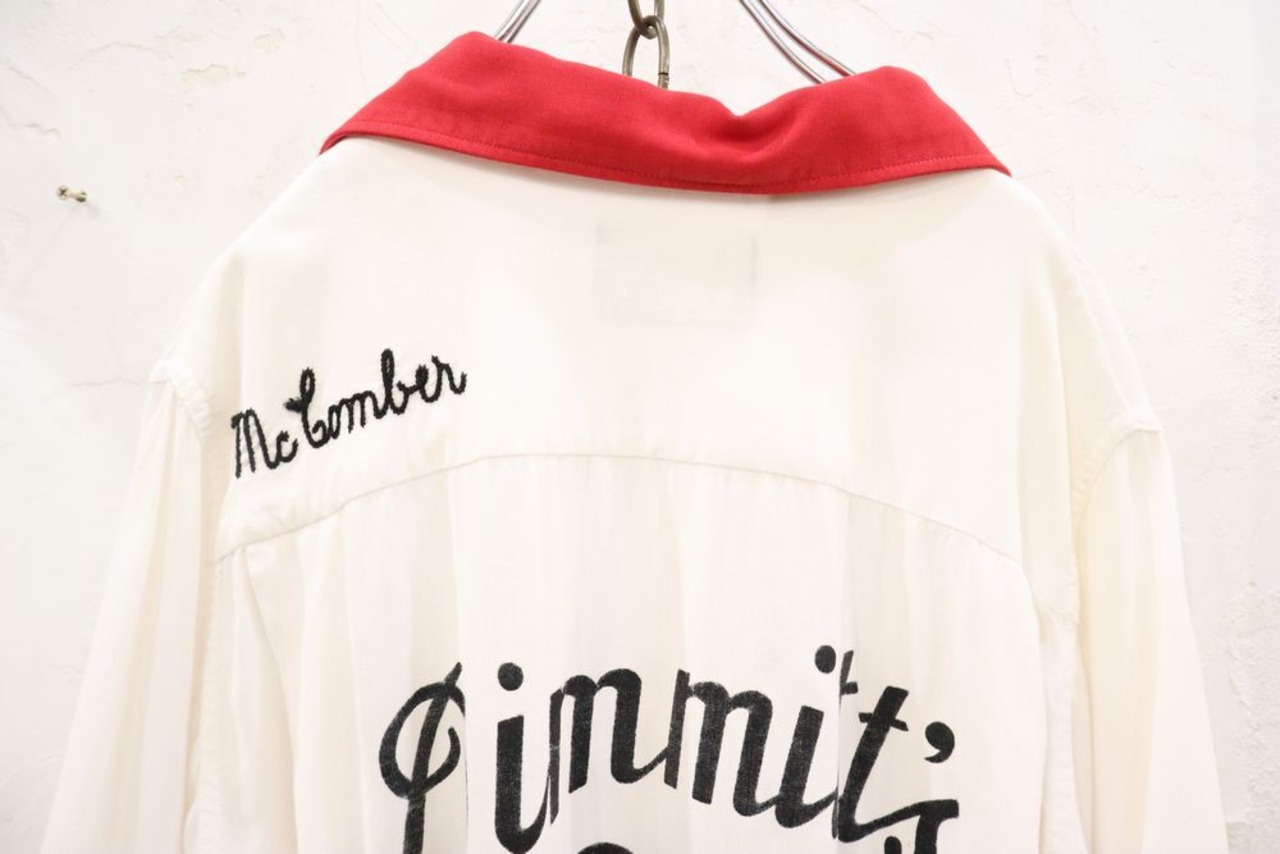 50-60s white×red×black embroidery bowling shirt [k-982]