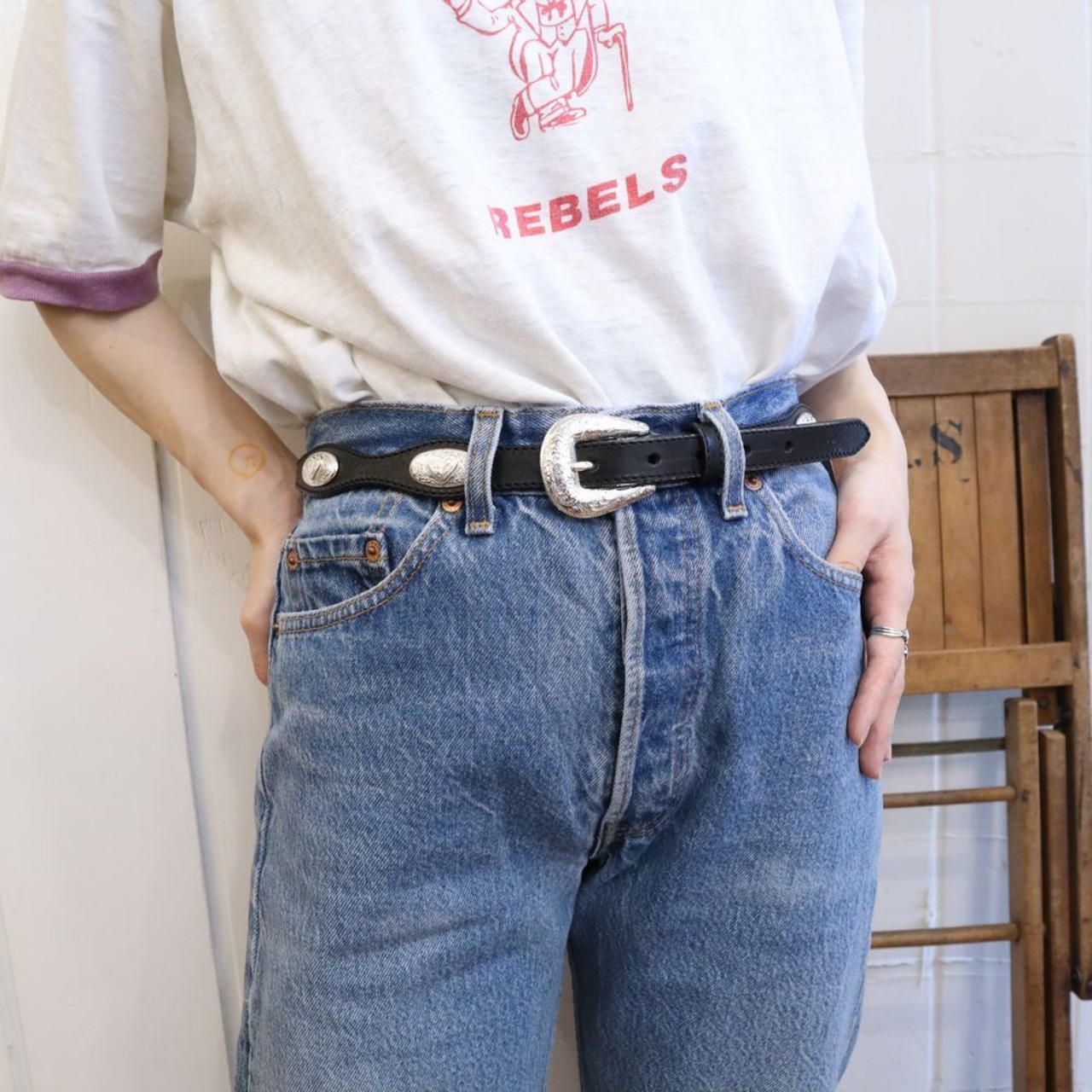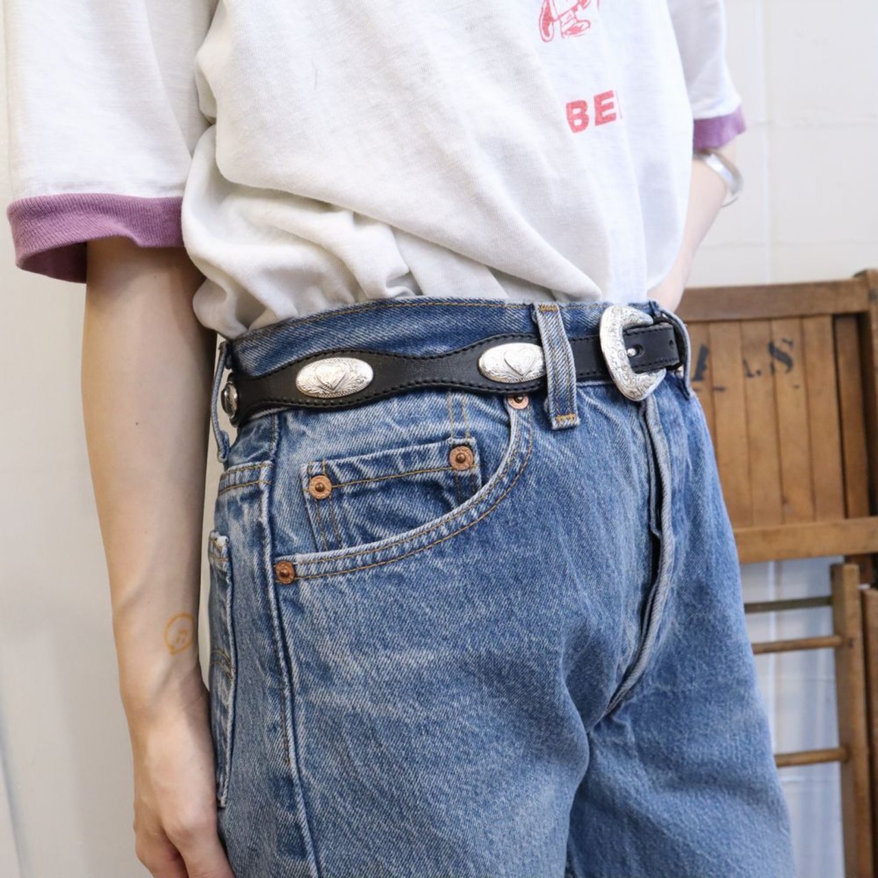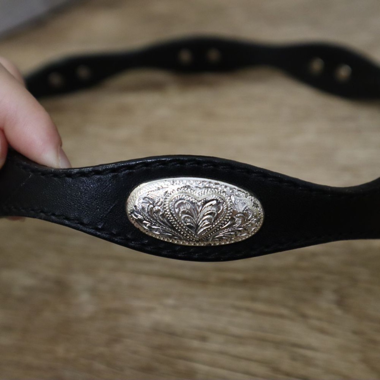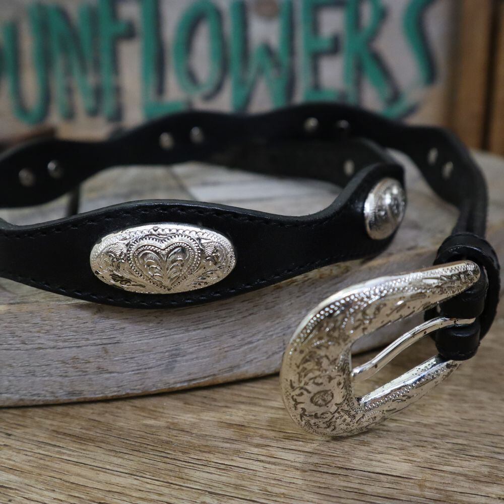 ハートデザインのコンチョが可愛いレザーベルトです。