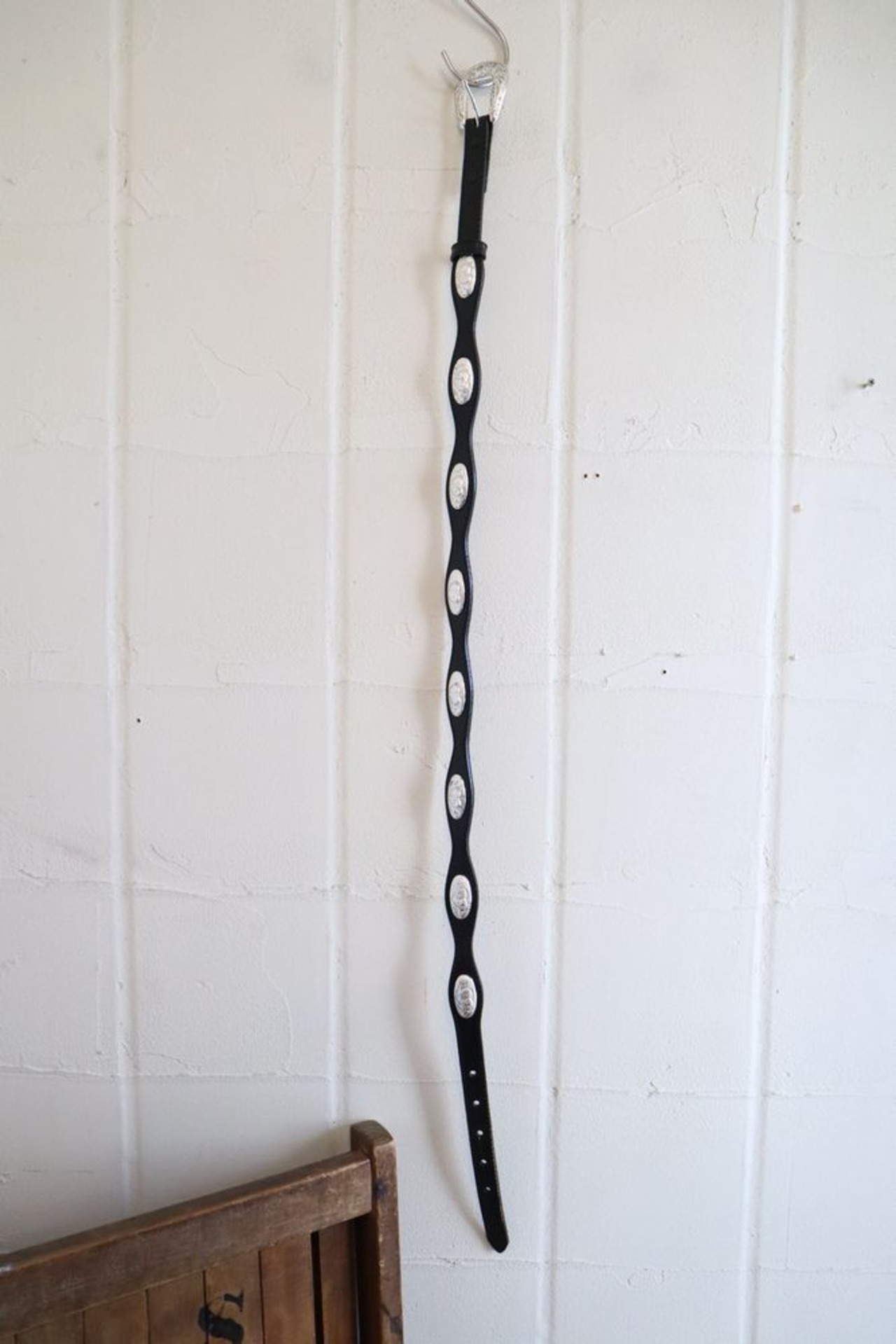 black × silver heart concho leather belt [l-992]