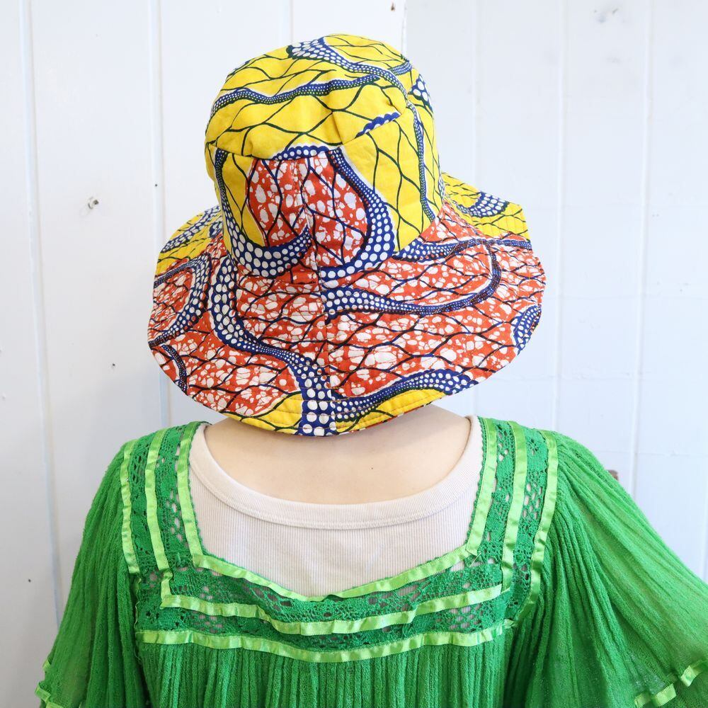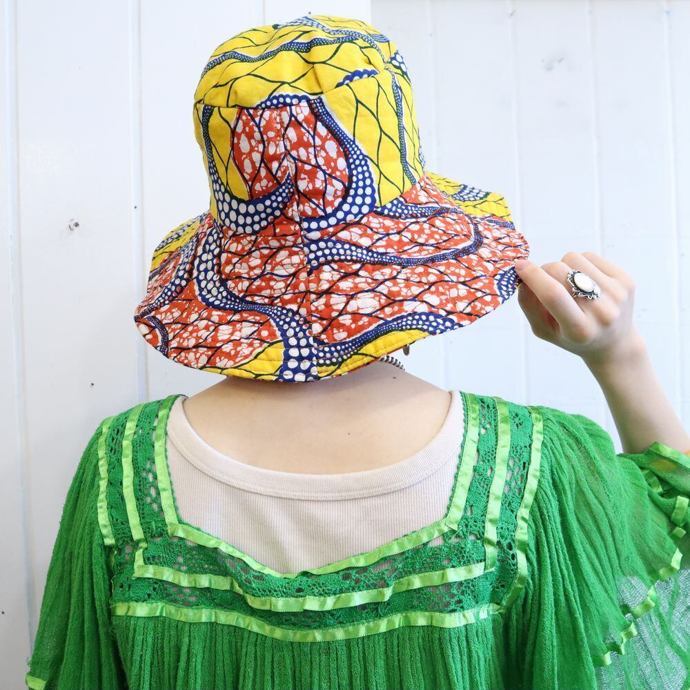 明るいカラーリングのアフリカンバティックが可愛いハットです♡