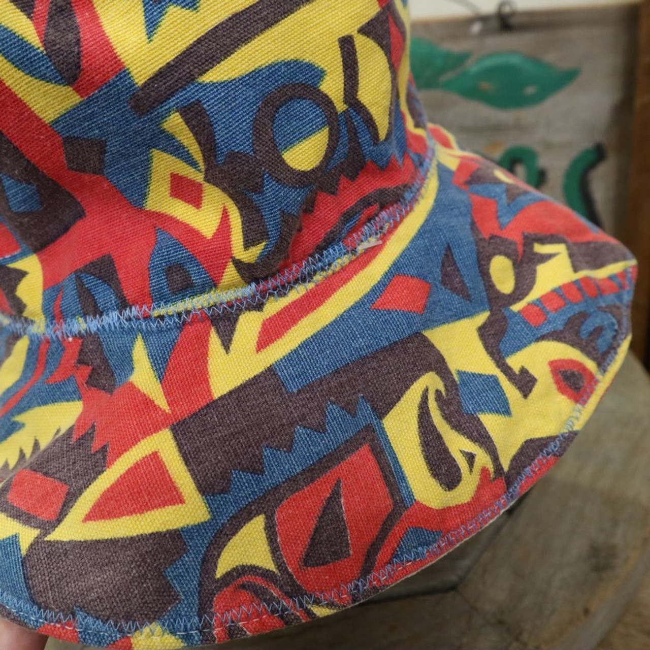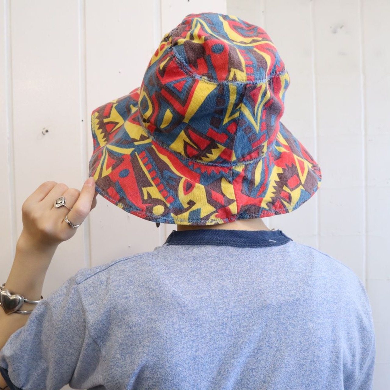 ポップな幾何学柄やカラーリングが可愛いハットです。