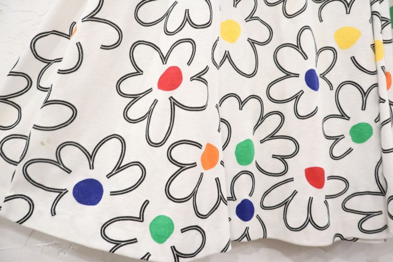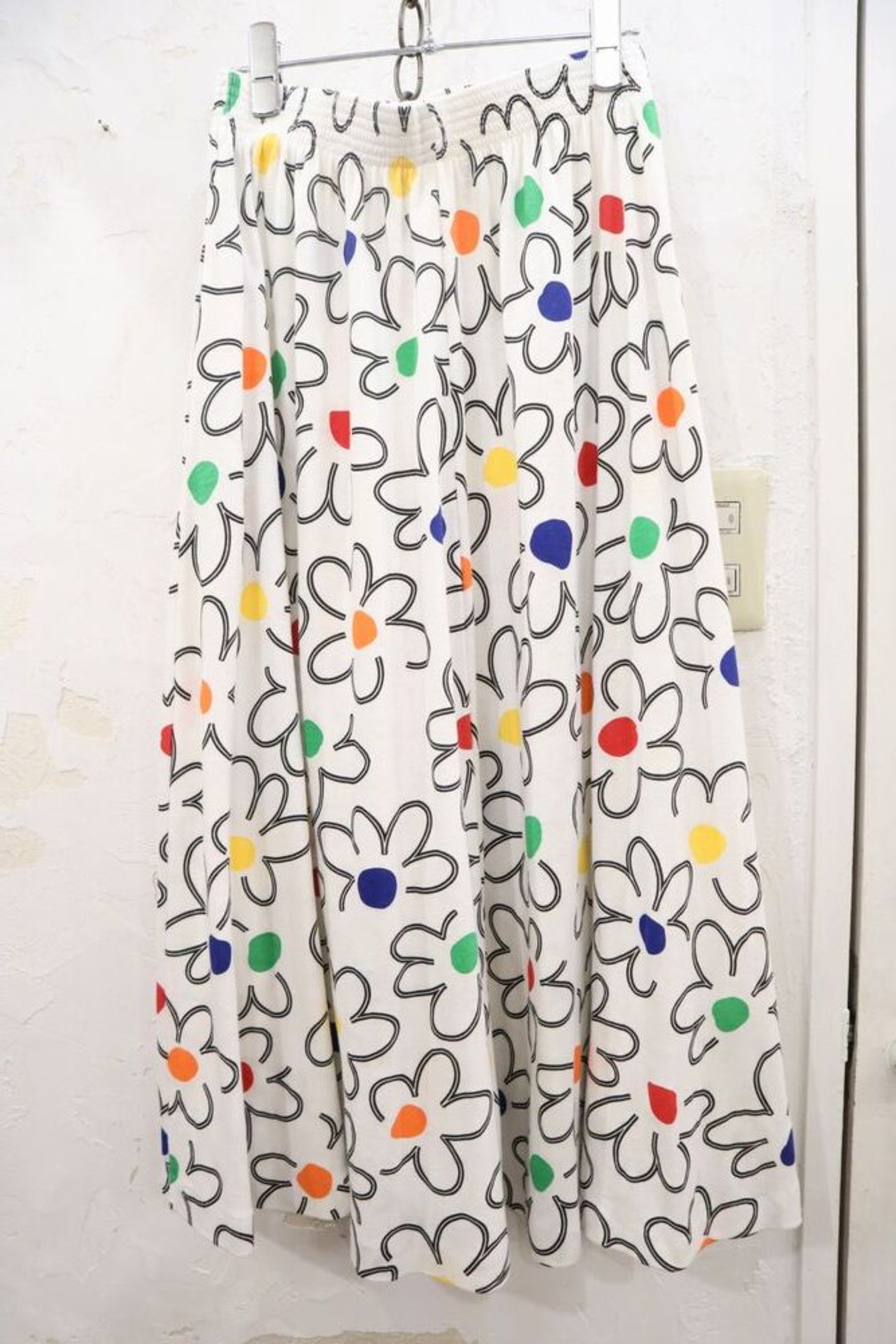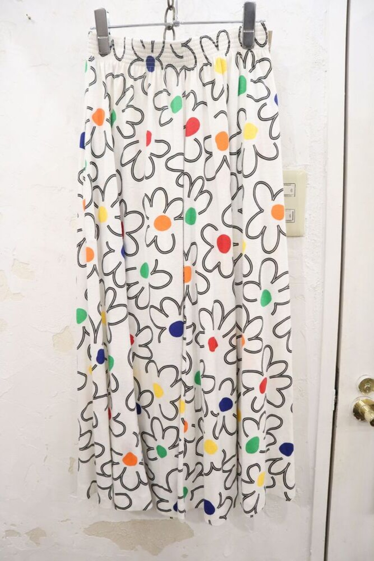 made in USA white×black×colorful flower pattern skirt [l-998]
