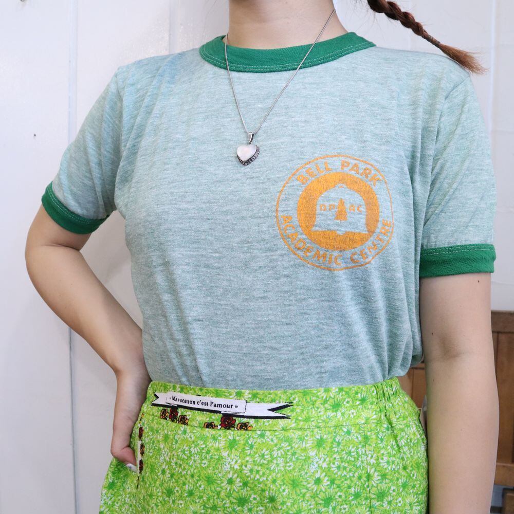 green×orange logo print ringer T-shirt [l-1002]