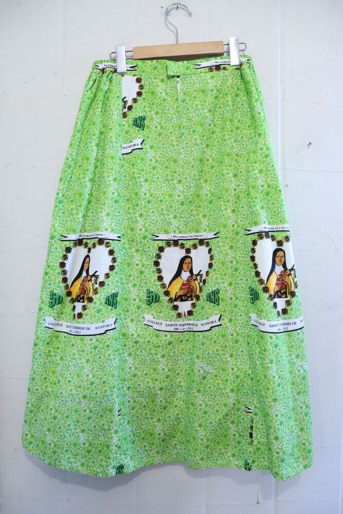 lightgreen×white african batik skirt [l-1011]