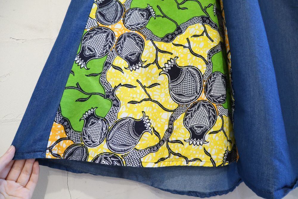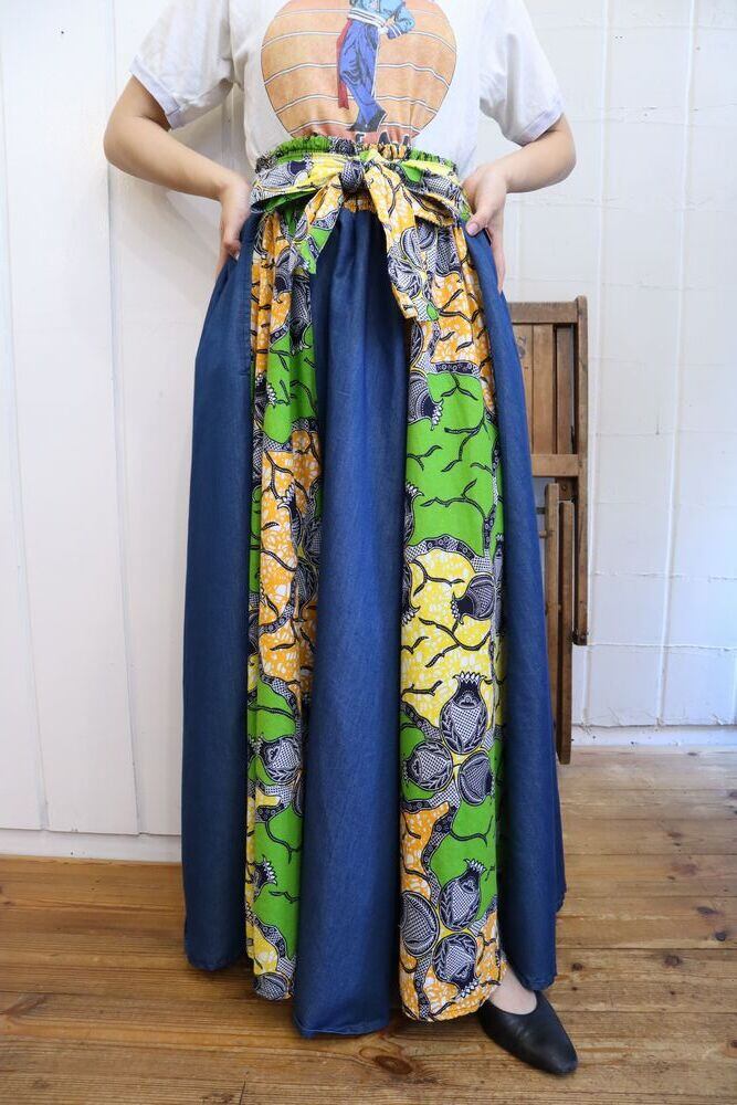 blue×green×colorful african batik denim switch skirt [l-1013]