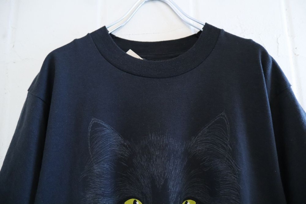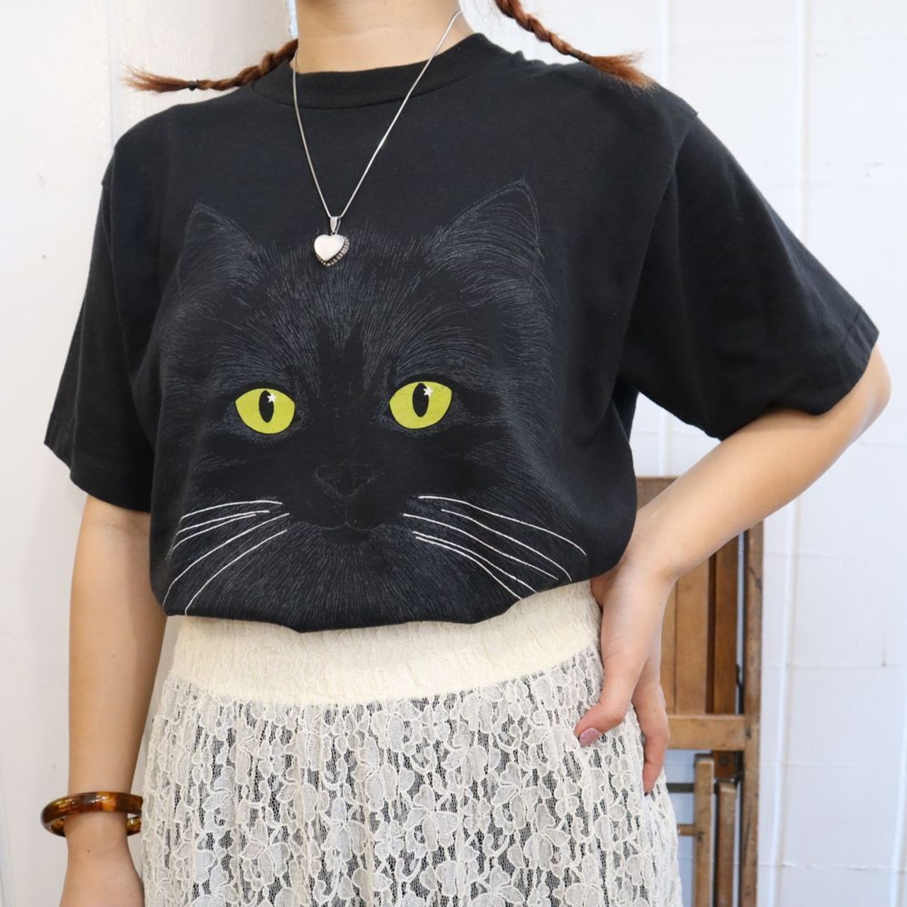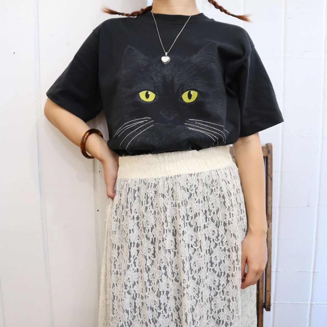 黒地にネコの目や髭が映えたデザインが可愛いTシャツ♡