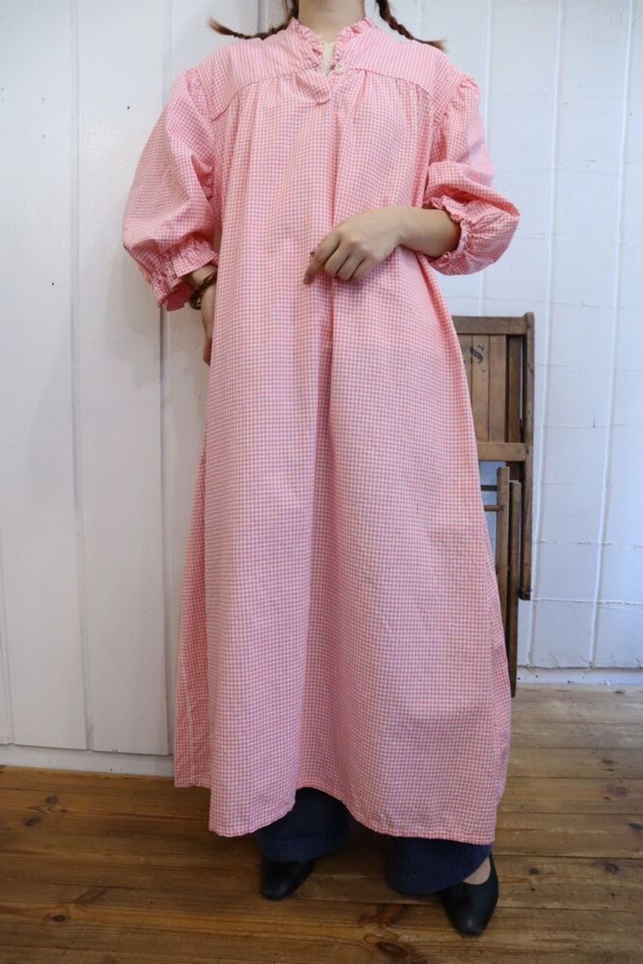 pink×white plaid pattern dress [l-1031]
