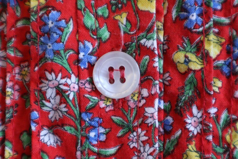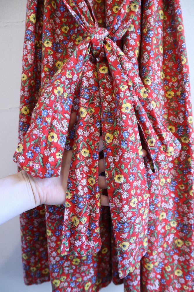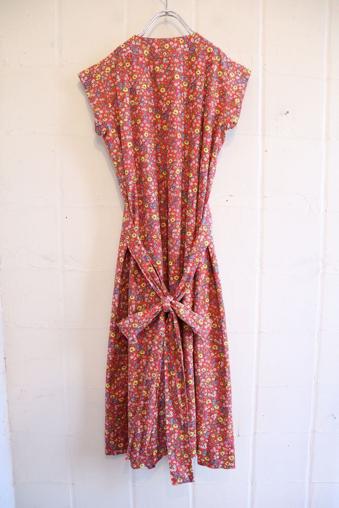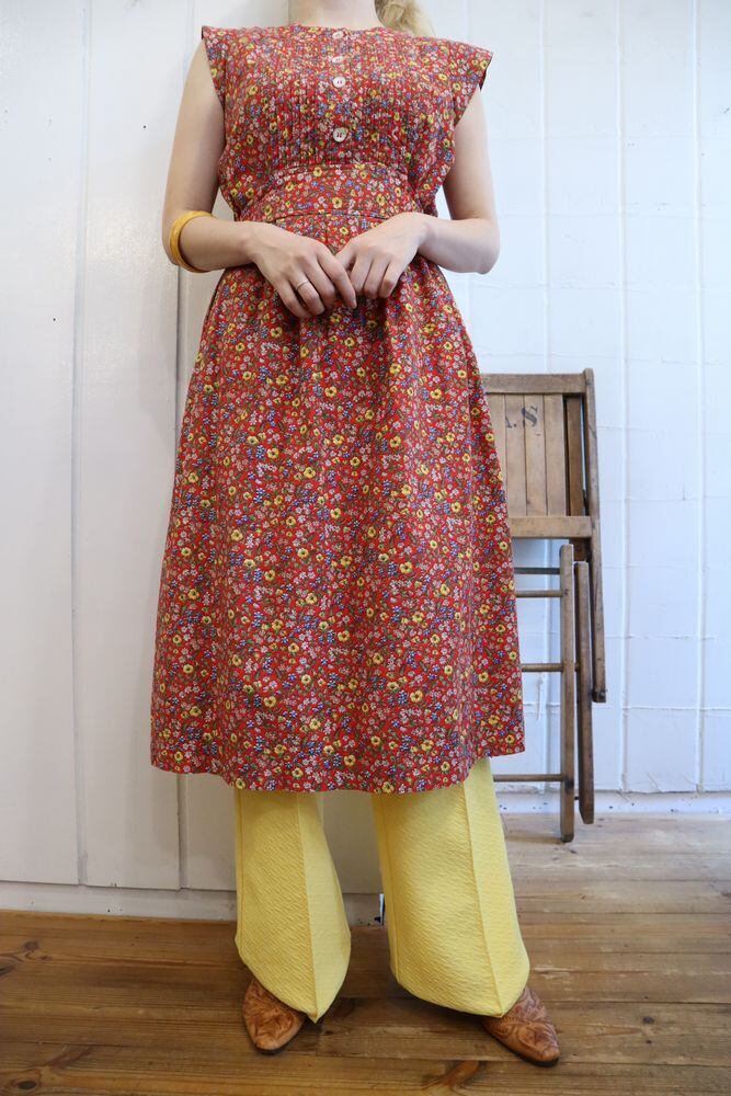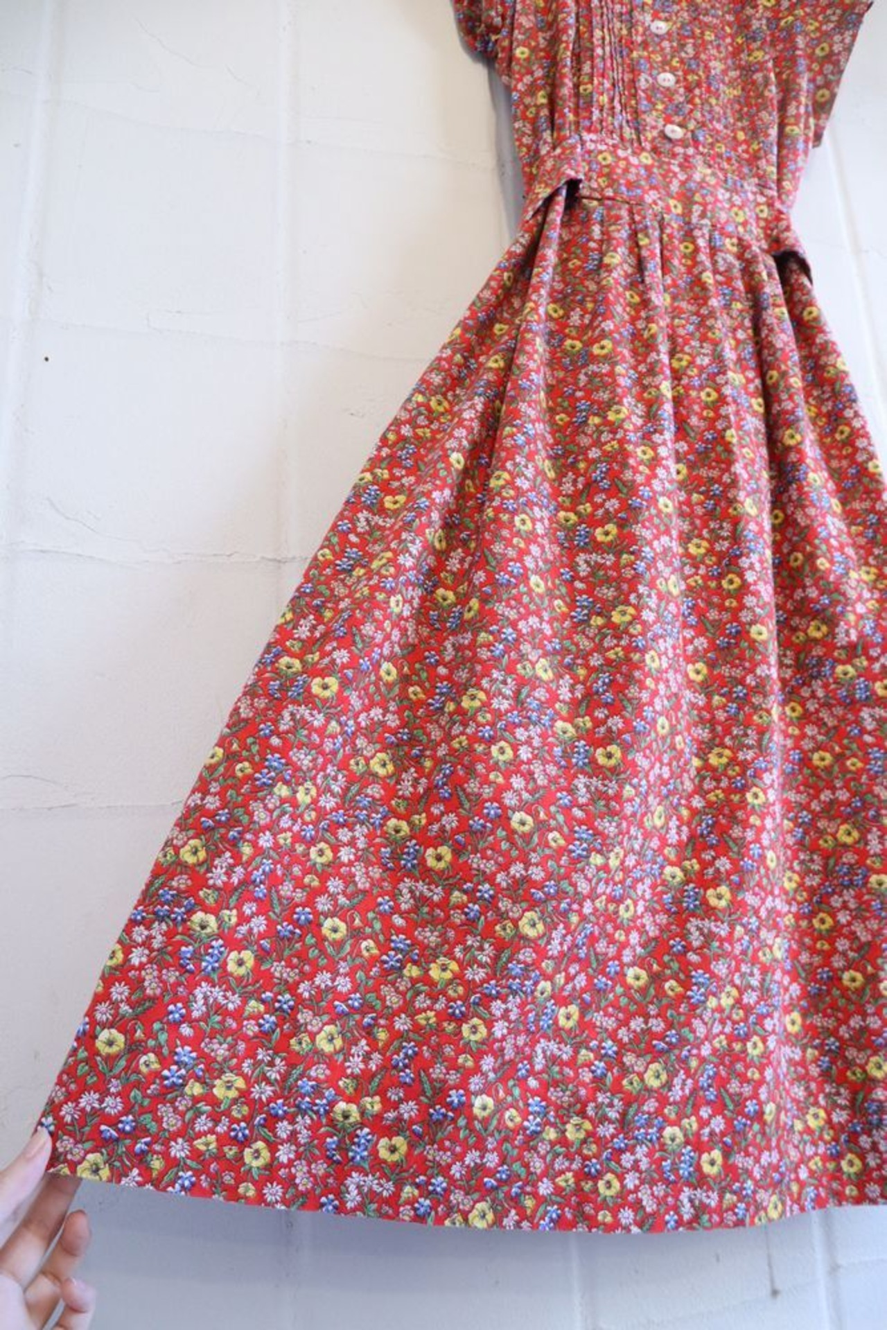 70s red×yellow×blue front tuck design flower pattern dress [l-1037]