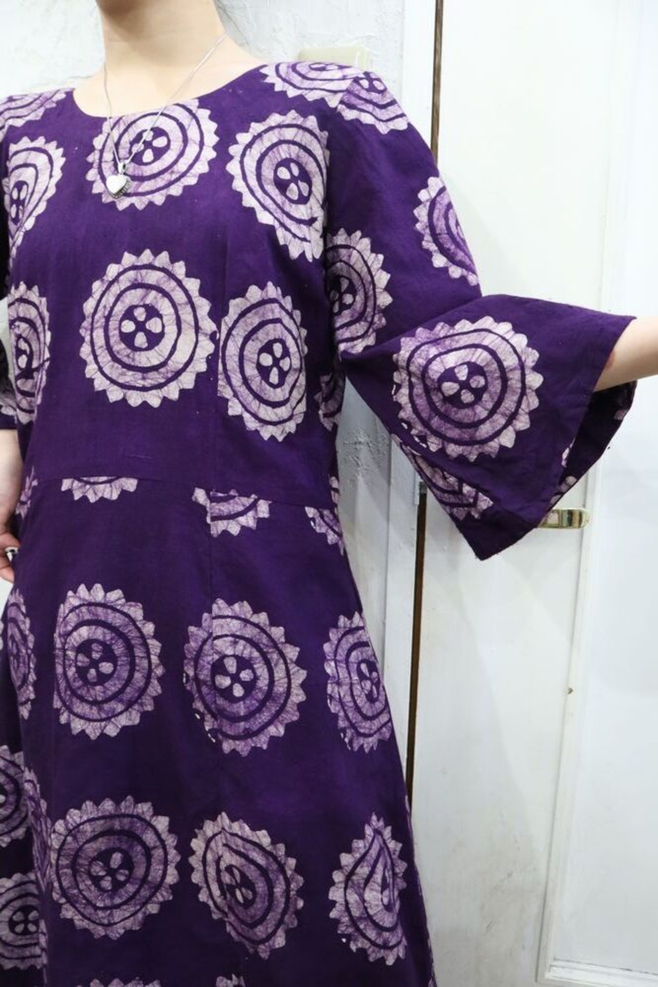 purple african batik wide sleeve dress [k-1039]