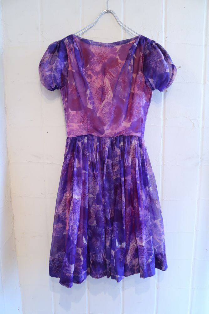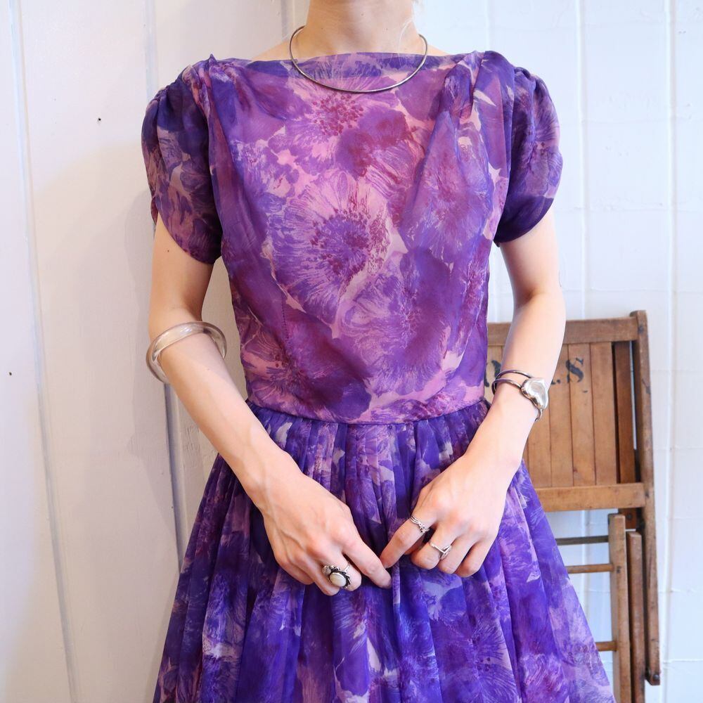 50-60s purple×pink boat neck chiffon dress [l‐40220]
