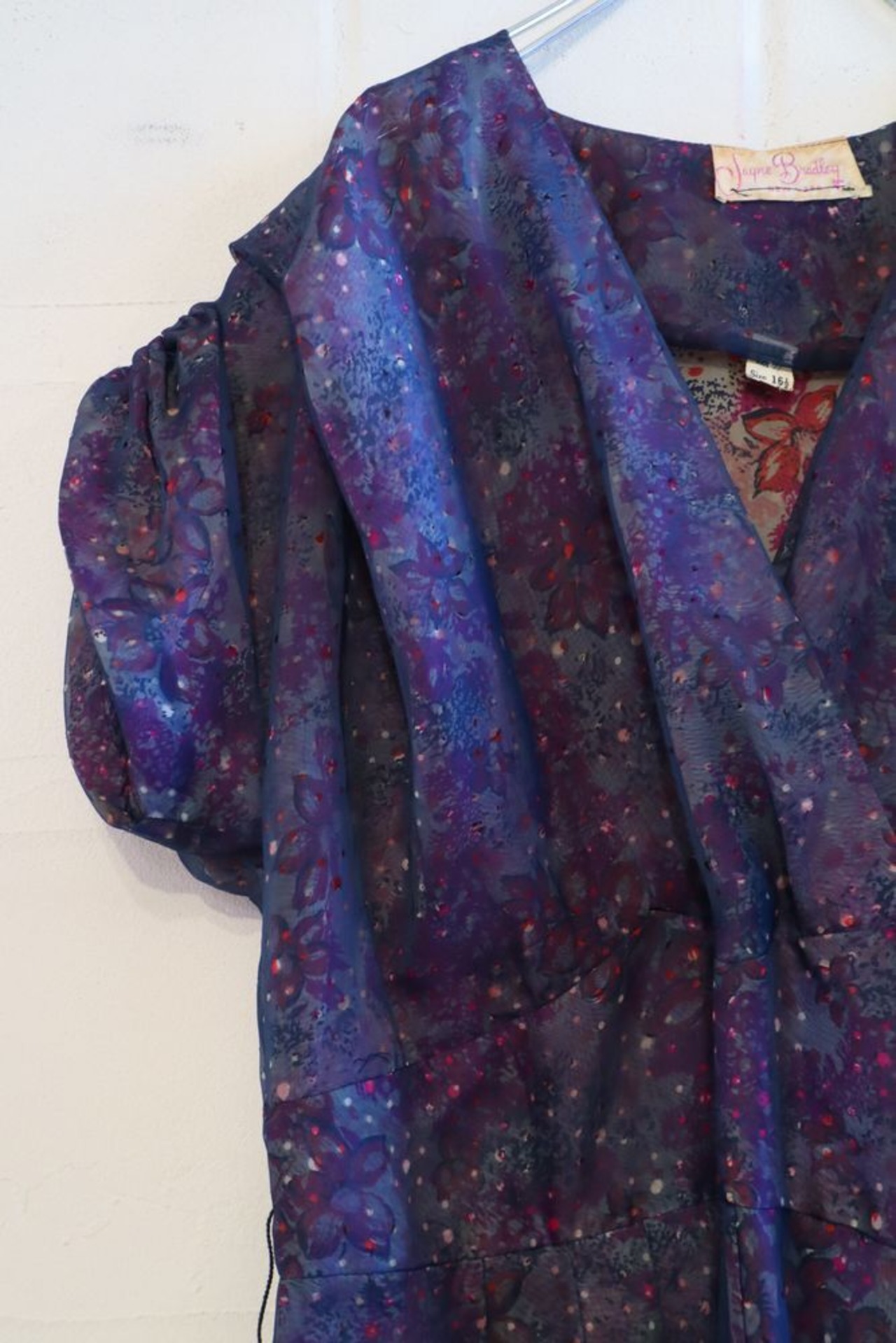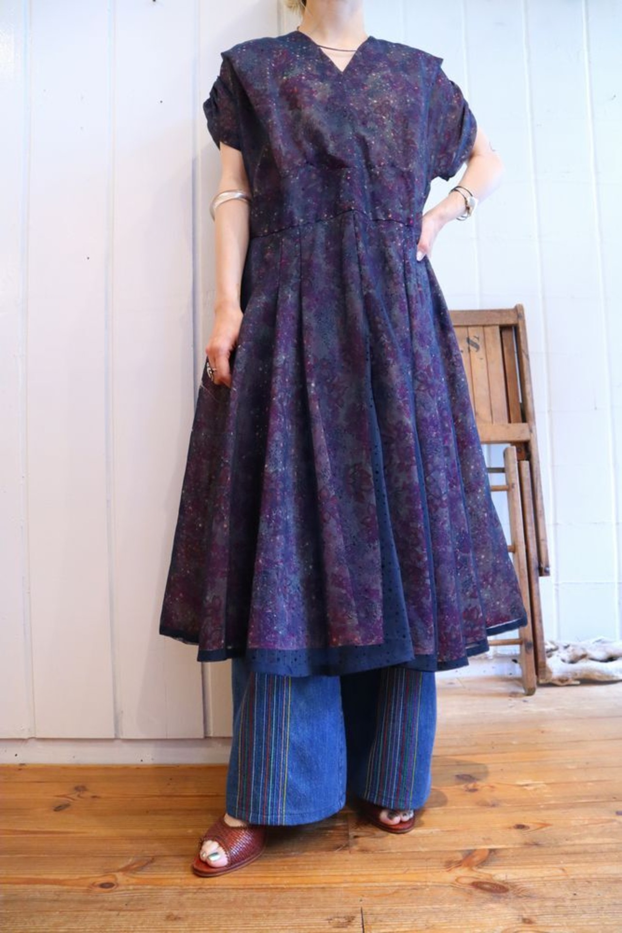50-60s navy×pink punching see-through kashkur dress [l‐40221]