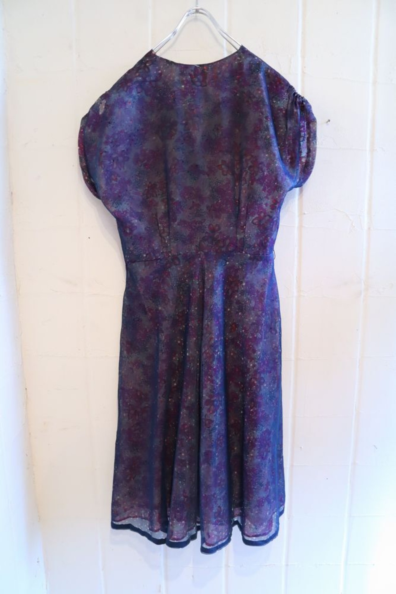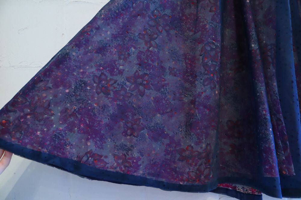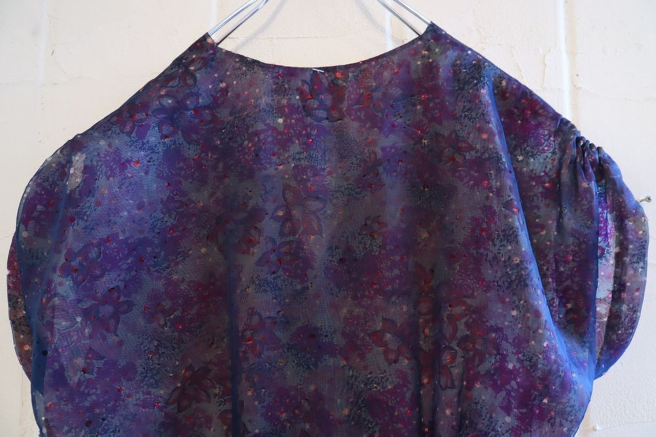 〇型にくり抜かれたシースルーからのぞく花柄が素敵なヴィンテージドレスです。