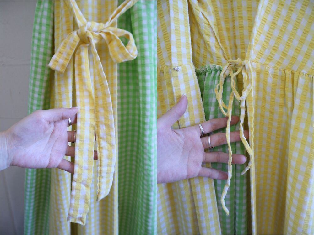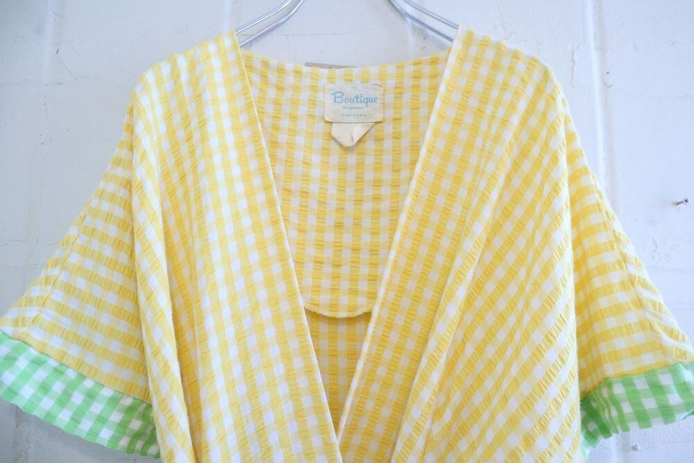70s yellow×lightgreen ginghamcheck gown dress [l-1054]