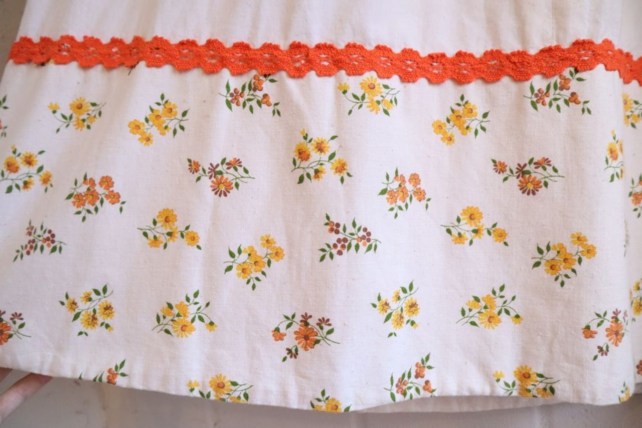 リネンのような生地に花柄、オレンジレースの組み合わせが文句なしの可愛さです♡