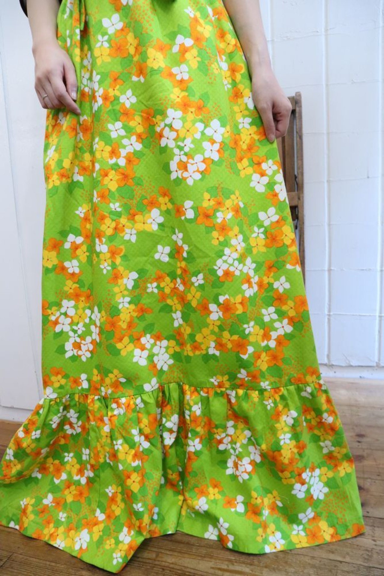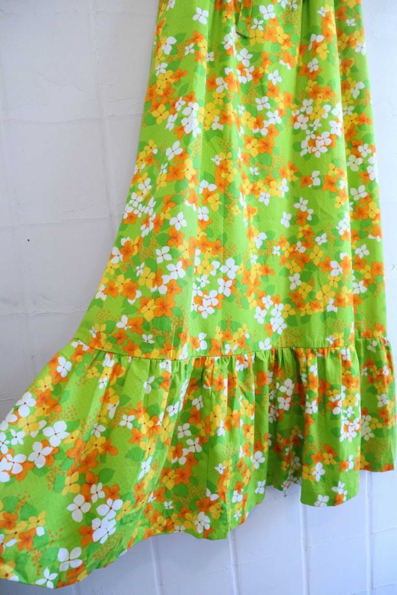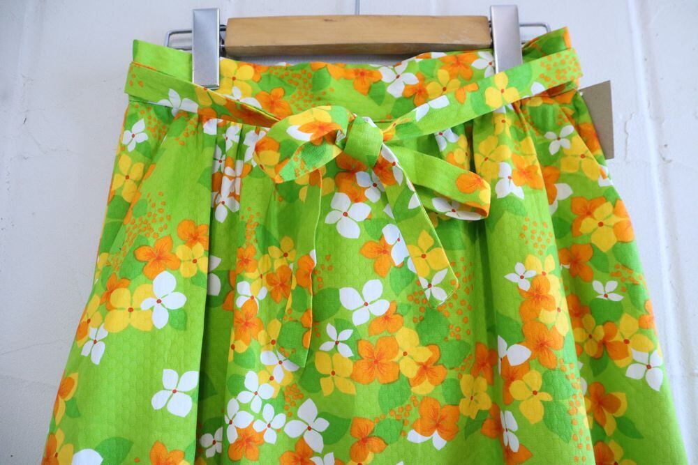70s green × orange flower frill hem Hawaiian skirt [l-1062]