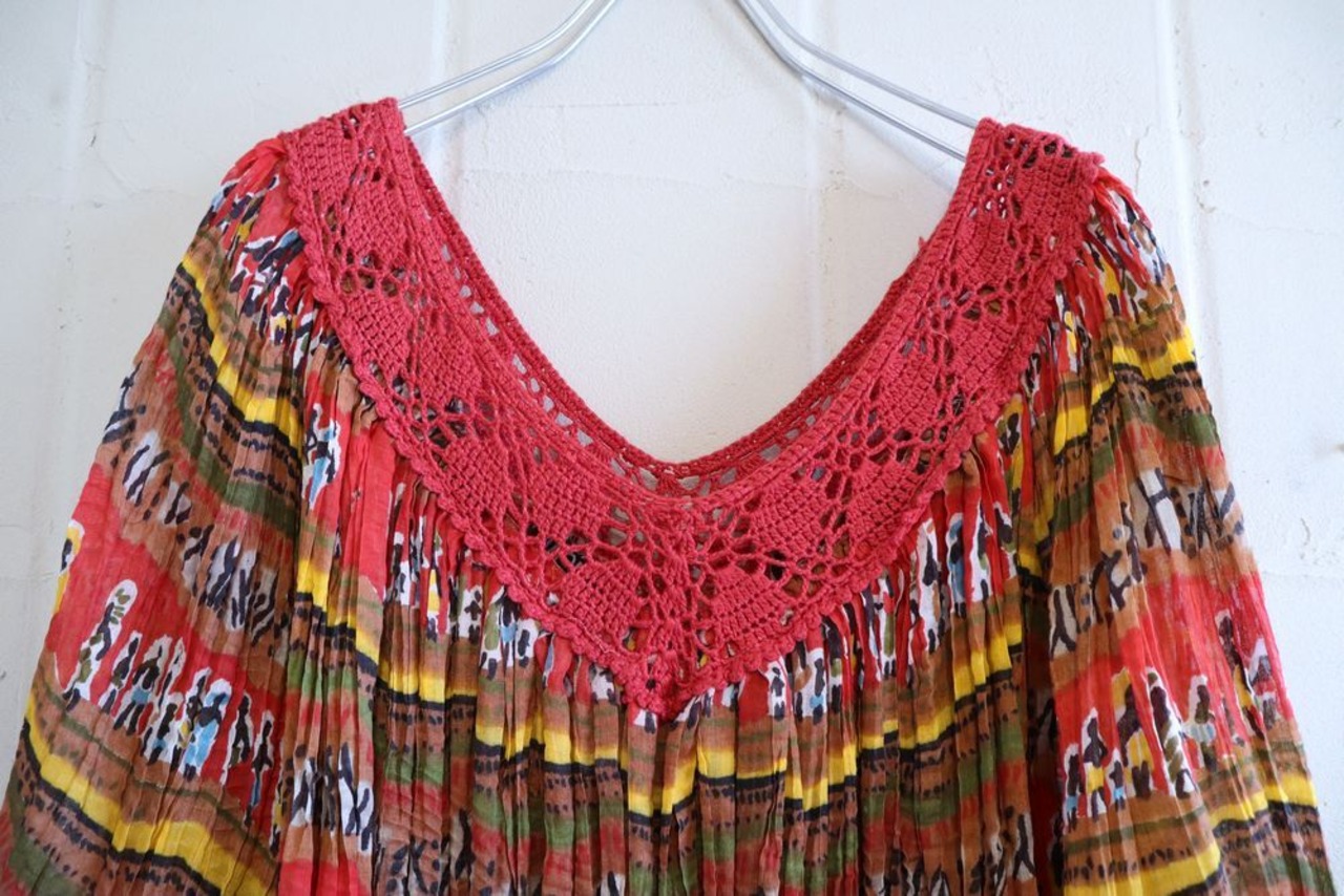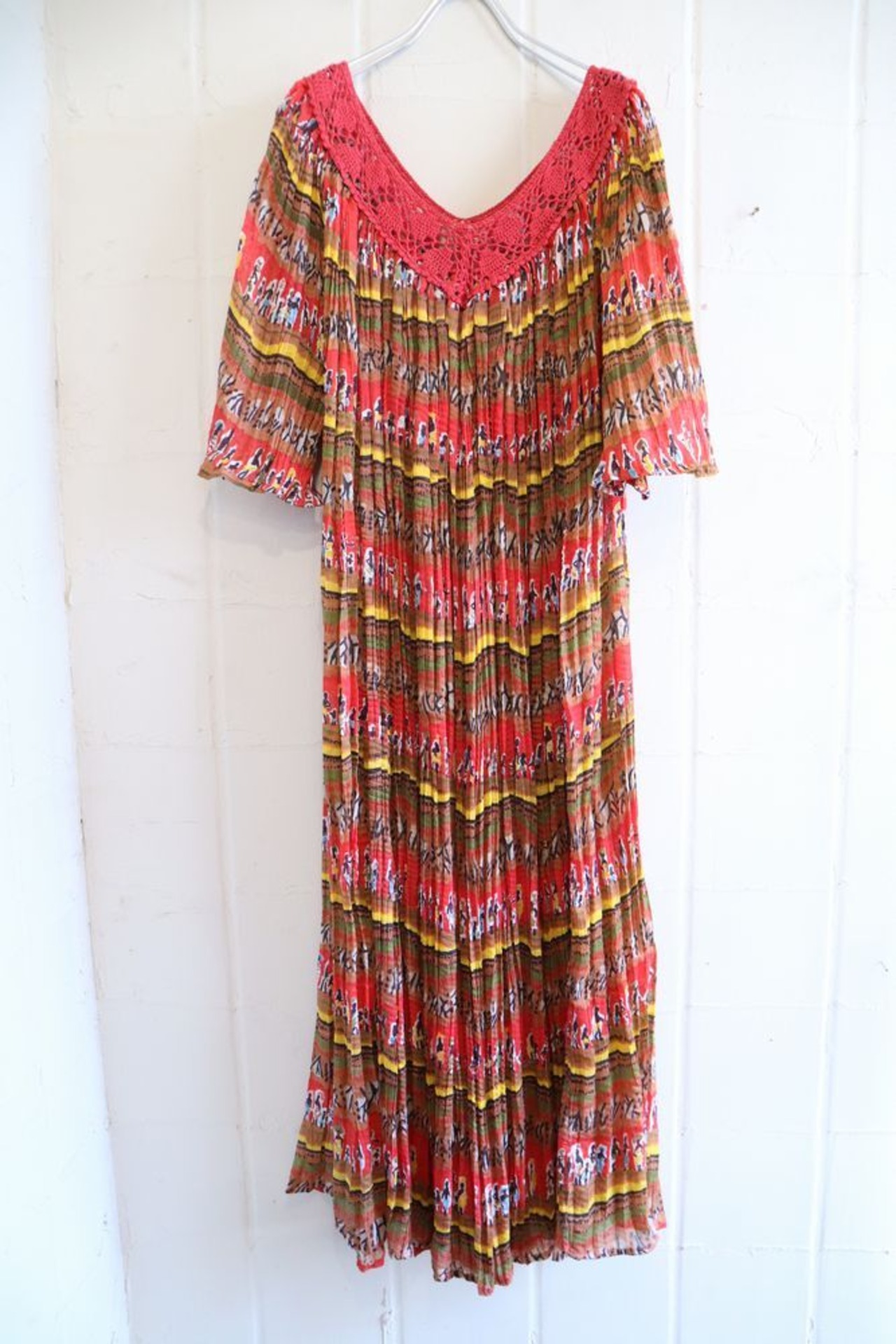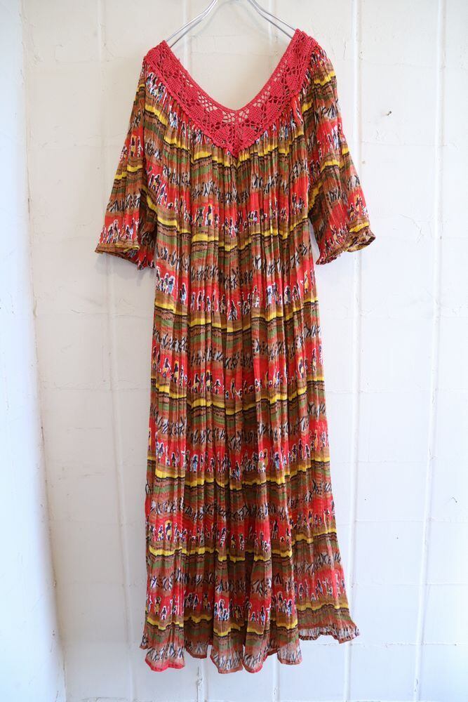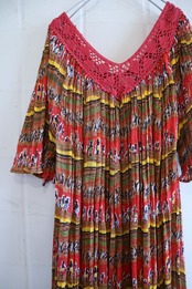 red×yellow×colorful ethnic pattern pleats dress [l-1069]