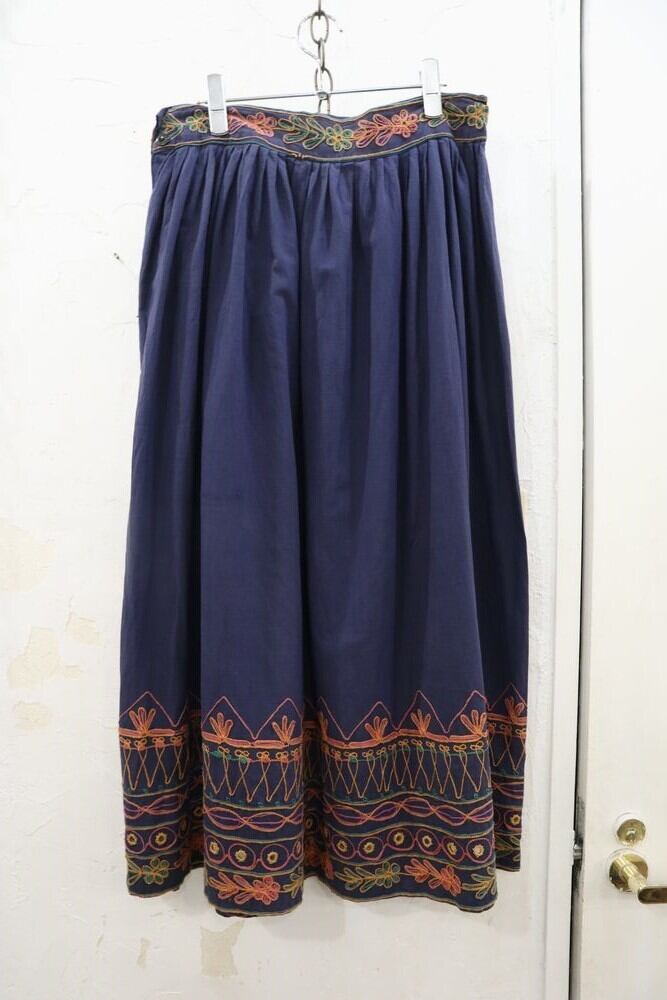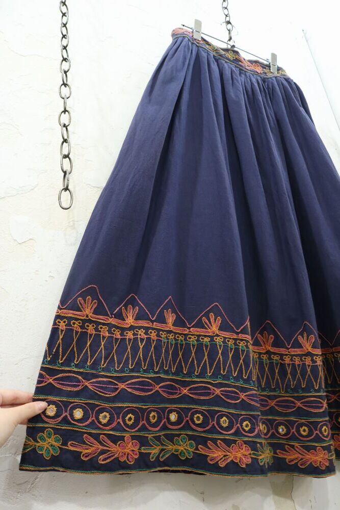70s embroidery mirrorwork vintage skirt [l-1072]