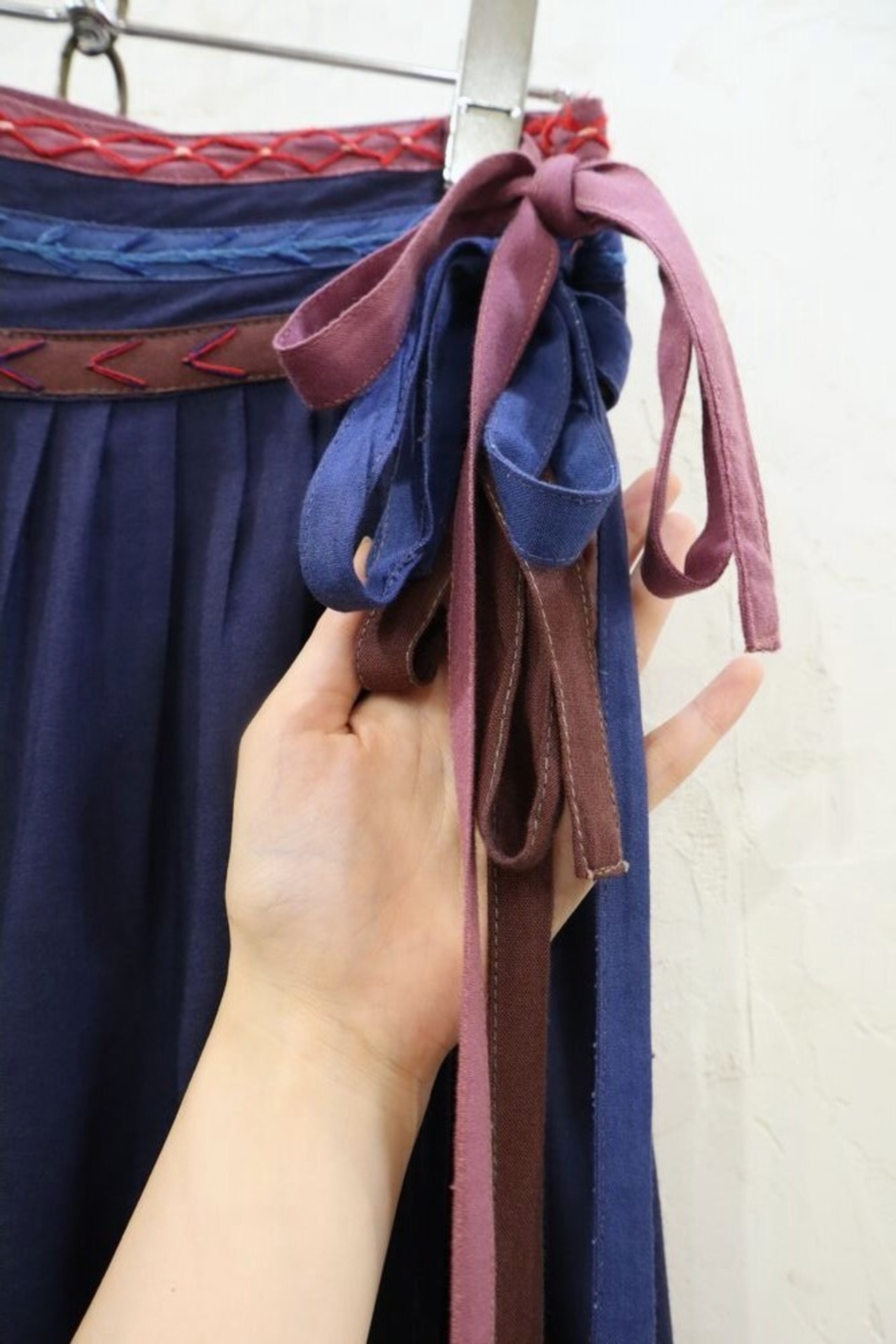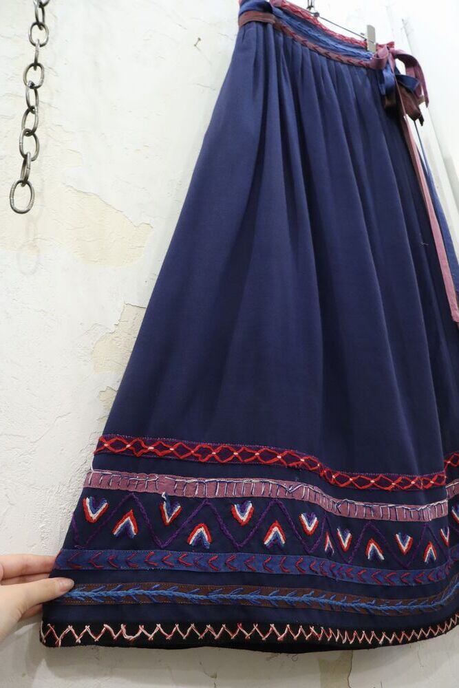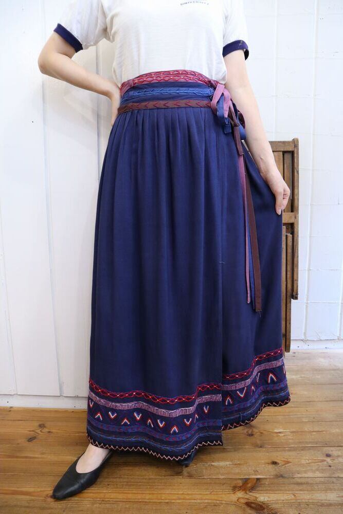 70s embroidery vintage rayon wrap skirt [l-1073]