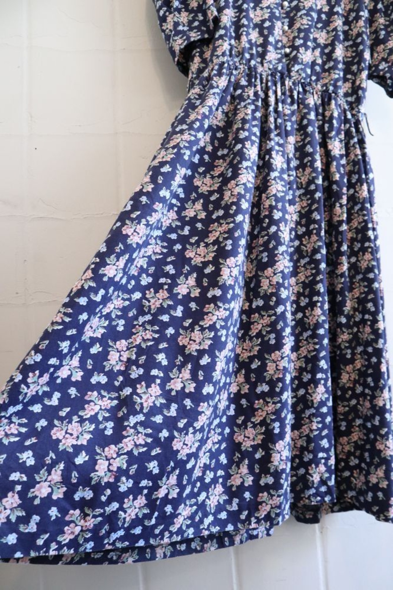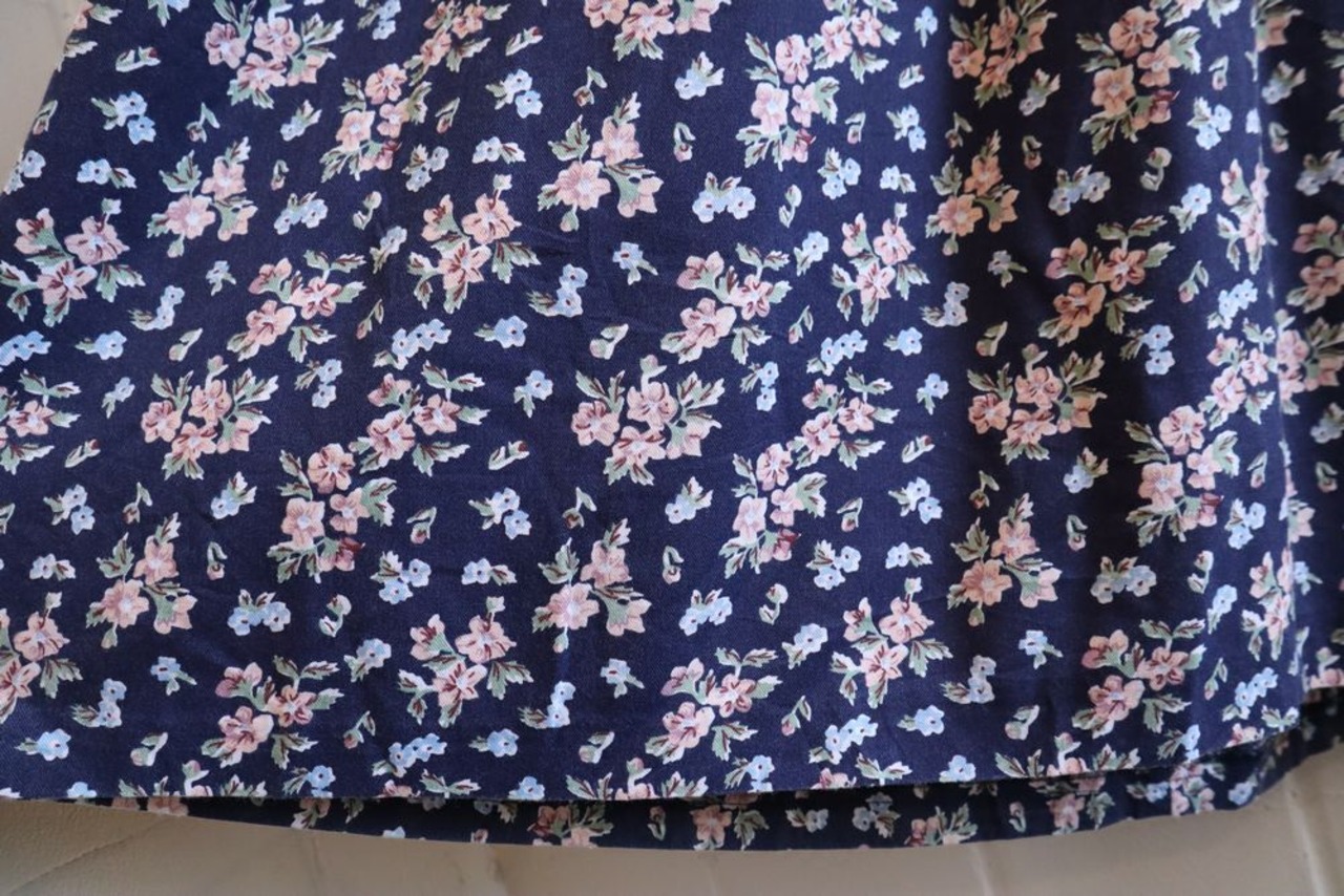 パステルカラーのお花が甘めながら、ベースがネイビーで着やすい一点♡